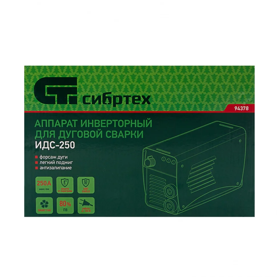 Аппарат инверторный дуговой сварки ИДС-250, 250 А, ПВ 80%, диаметр электрода 1.6-5 мм Сибртех 94378