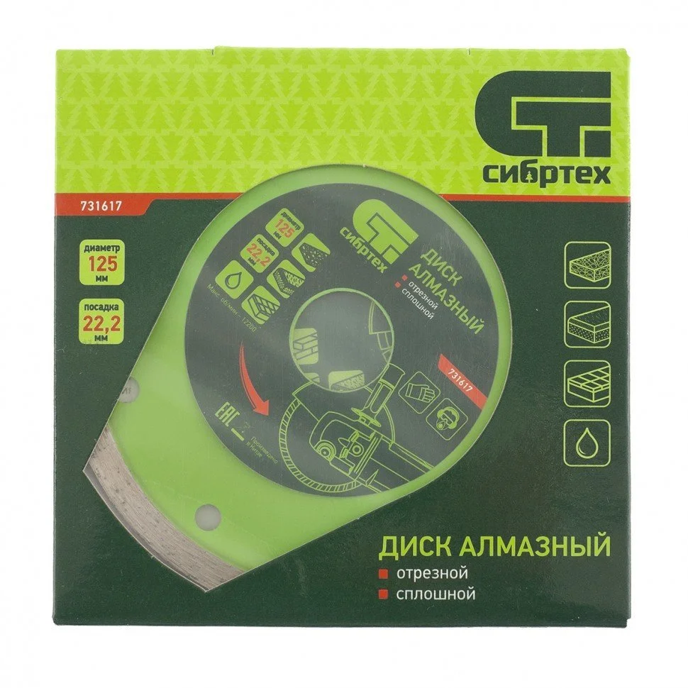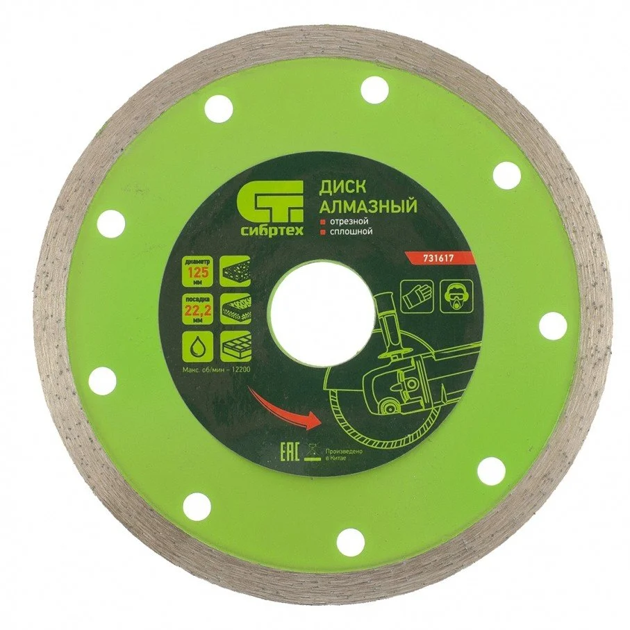 Диск алмазный отрезной сплошной СИБРТЕХ 125 х 22,2 мм, мокрая резка 731617