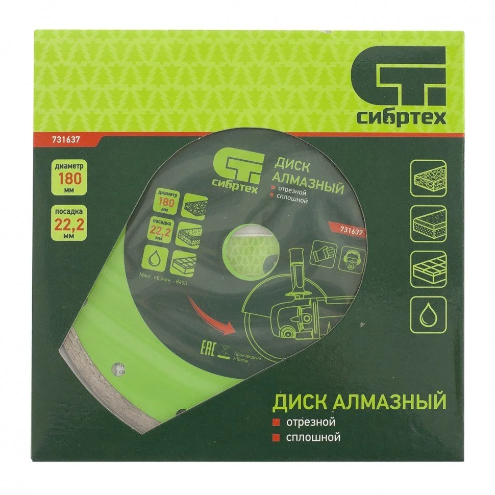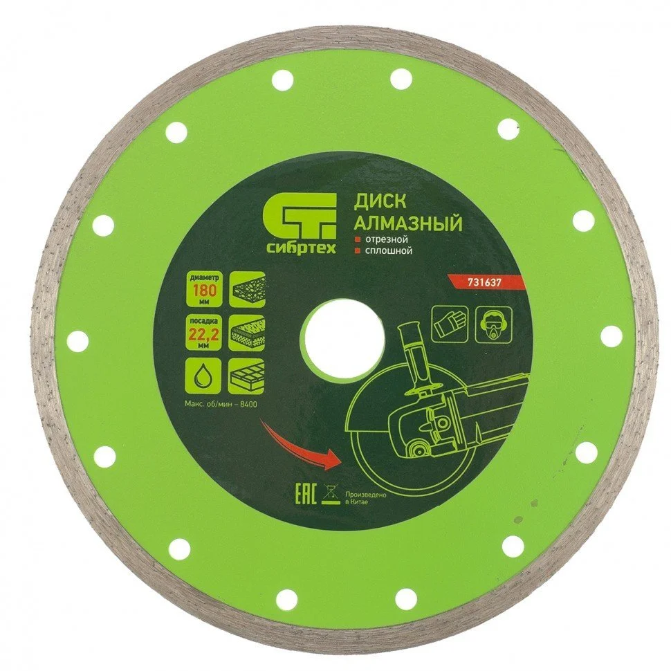Диск алмазный отрезной сплошной СИБРТЕХ 180 х 22,2 мм, мокрая резка 731637