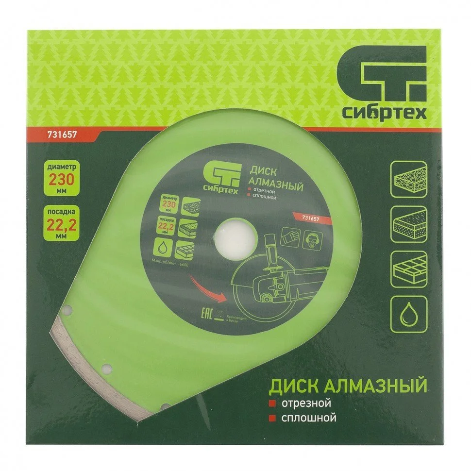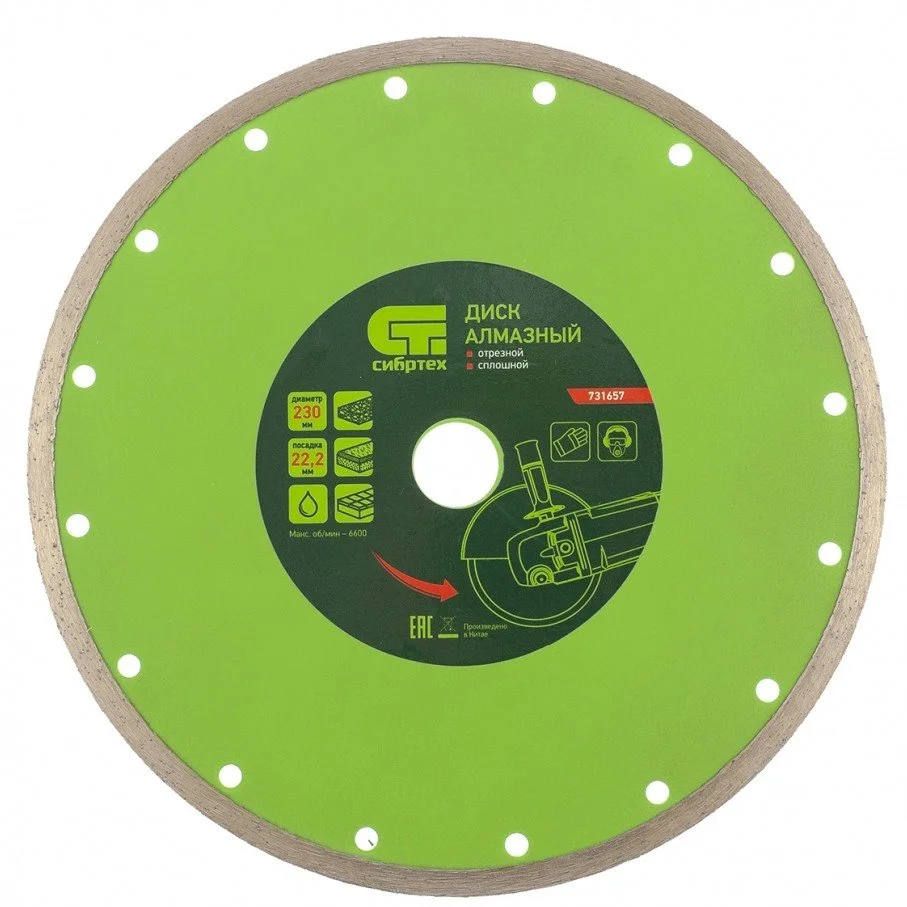 Диск алмазный отрезной сплошной СИБРТЕХ 230 х 22,2 мм, мокрая резка 731657