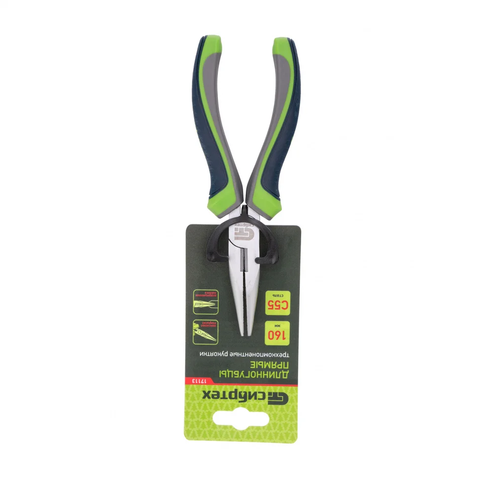Длинногубцы прямые, 160 мм, трехкомпонентные рукоятки Сибртех 17113