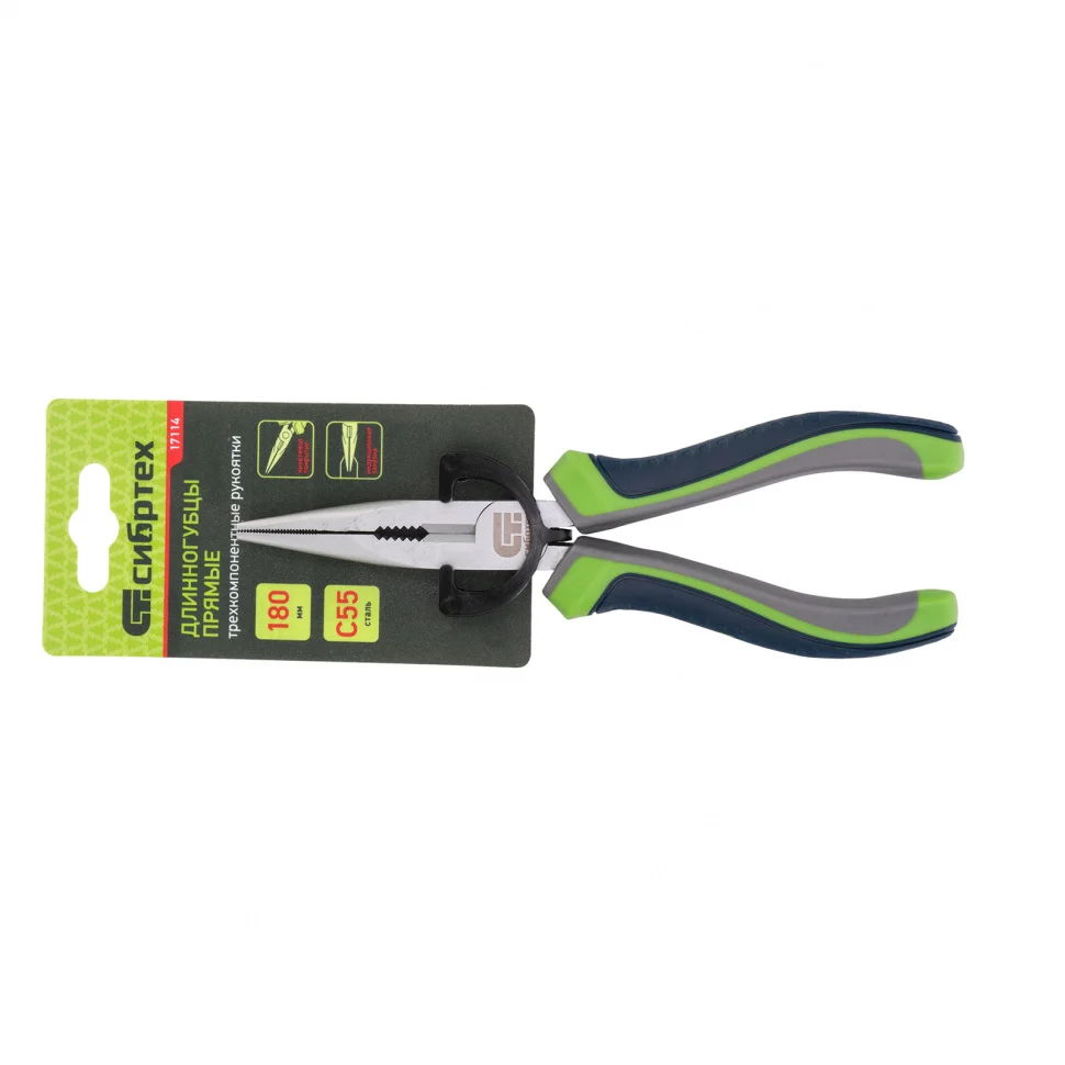 Длинногубцы прямые, 180 мм, трехкомпонентные рукоятки Сибртех 17114