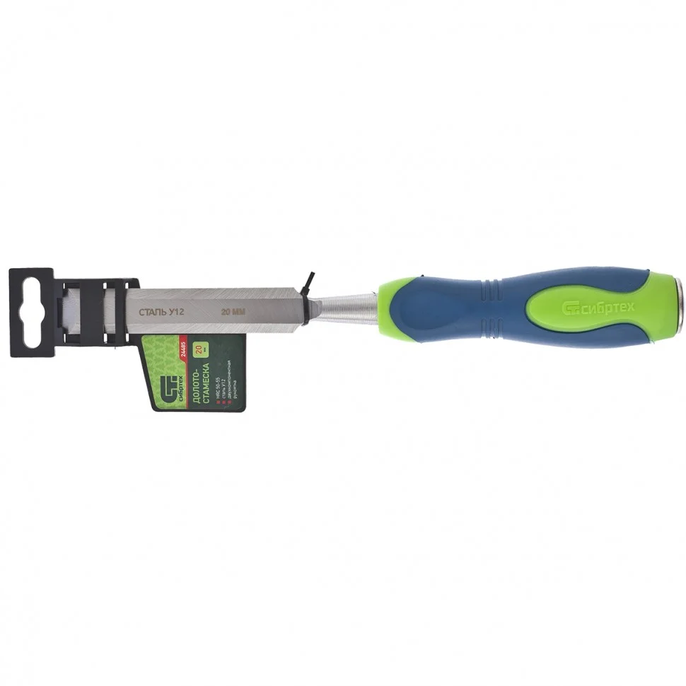 Долото-стамеска Сибртех 24485 с двухкомпонентной рукояткой — ручной инструмент с шириной режущей части 20 мм для столярных и плотницких работ с массивом натурального дерева. Под ударом киянки или небольшого молотка долото-стамеска легко врезается в древесину любых пород, что позволяет получать аккуратные прямоугольные пазы, снимать фаски, зачищать гнезда и т.д.ПреимуществаПрочность — полотно стамески изготовлено из высококачественной конструкционной углеродистой стали 55.Долговечность — полотно на 2/3 длины рабочей части закалено до твердости 50-55 HRC, поэтому инструмент долго сохраняет остроту.Высокая эффективность — режущая часть остро заточена на заводе под углом 20-35 градусов, что обеспечивает качественную работу и аккуратный результат.Защита от разрушения — металлический затыльник предотвращает деформацию рукоятки под воздействием киянки или молотка.Эргономичность — обрезиненная двухкомпонентная рукоятка не выскальзывает из руки и обеспечивает комфортную работу.