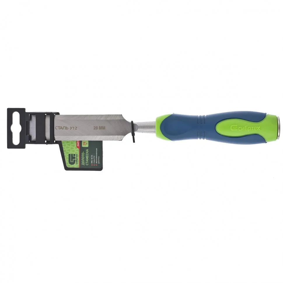 Долото-стамеска Сибртех 24493 с двухкомпонентной рукояткой — ручной инструмент с шириной режущей части 28 мм для столярных и плотницких работ с массивом натурального дерева. Под ударом киянки или небольшого молотка долото-стамеска легко врезается в древесину любых пород, что позволяет получать аккуратные прямоугольные пазы, снимать фаски, зачищать гнезда и т.д.ПреимуществаПрочность — полотно стамески изготовлено из высококачественной конструкционной углеродистой стали 55.Долговечность — полотно на 2/3 длины рабочей части закалено до твердости 50-55 HRC, поэтому инструмент долго сохраняет остроту.Высокая эффективность — режущая часть остро заточена на заводе под углом 20-35 градусов, что обеспечивает качественную работу и аккуратный результат.Защита от разрушения — металлический затыльник предотвращает деформацию рукоятки под воздействием киянки или молотка.Эргономичность — обрезиненная двухкомпонентная рукоятка не выскальзывает из руки и обеспечивает комфортную работу.