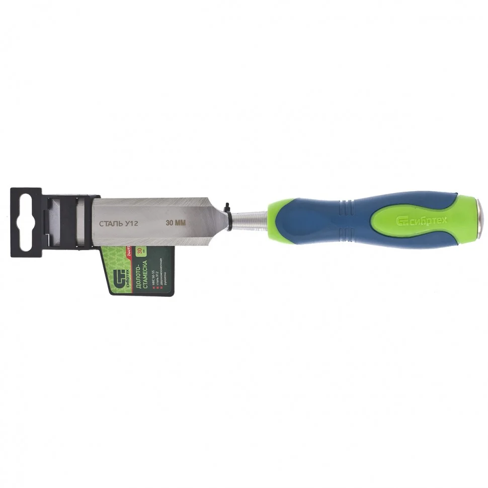 Долото-стамеска Сибртех 24495 с двухкомпонентной рукояткой — ручной инструмент с шириной режущей части 30 мм для столярных и плотницких работ с массивом натурального дерева. Под ударом киянки или небольшого молотка долото-стамеска легко врезается в древесину любых пород, что позволяет получать аккуратные прямоугольные пазы, снимать фаски, зачищать гнезда и т.д.ПреимуществаПрочность — полотно стамески изготовлено из высококачественной конструкционной углеродистой стали 55.Долговечность — полотно на 2/3 длины рабочей части закалено до твердости 50-55 HRC, поэтому инструмент долго сохраняет остроту.Высокая эффективность — режущая часть остро заточена на заводе под углом 20-35 градусов, что обеспечивает качественную работу и аккуратный результат.Защита от разрушения — металлический затыльник предотвращает деформацию рукоятки под воздействием киянки или молотка.Эргономичность — обрезиненная двухкомпонентная рукоятка не выскальзывает из руки и обеспечивает комфортную работу.