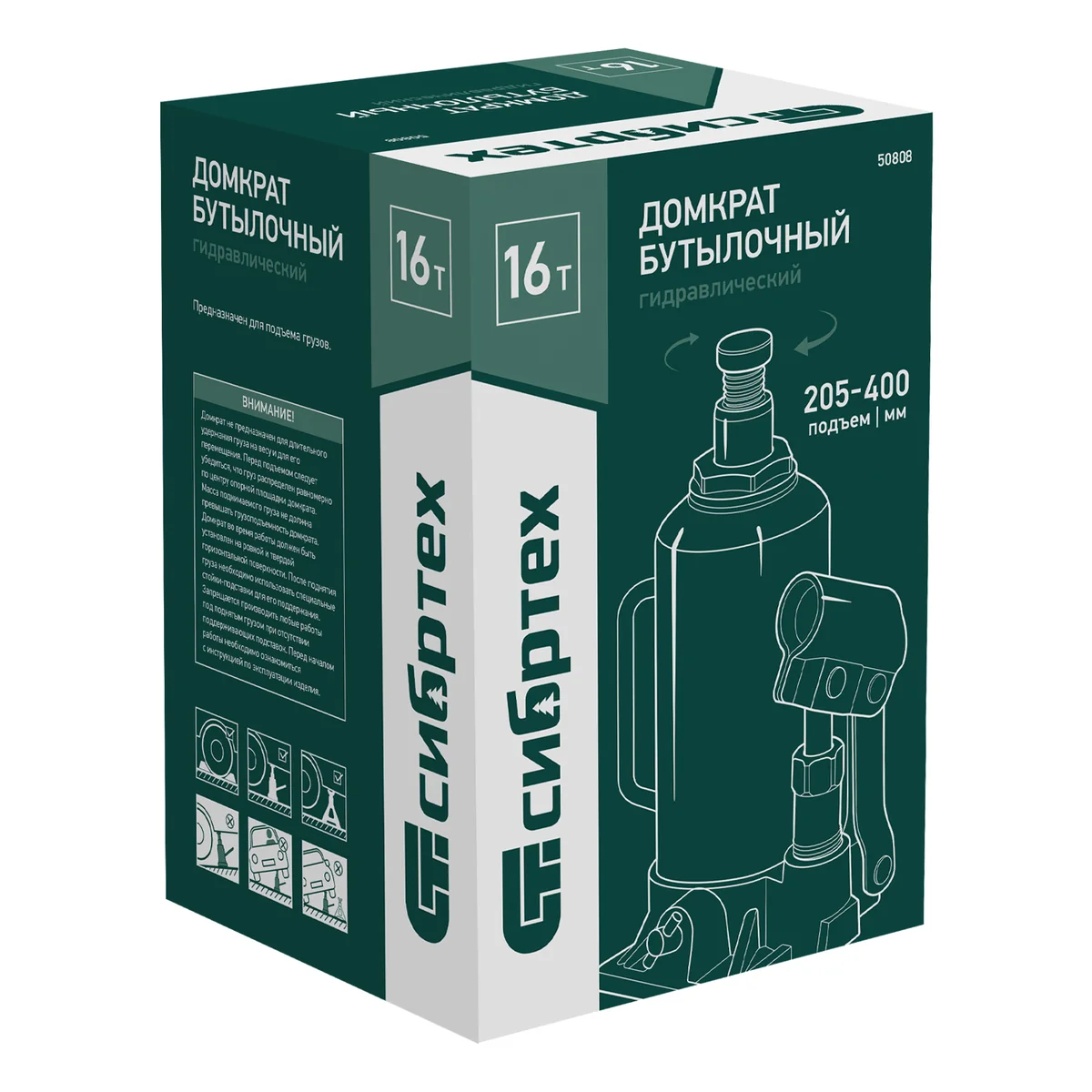 Домкрат гидравлический бутылочный, 16 т, 205-400 мм Сибртех 50808
