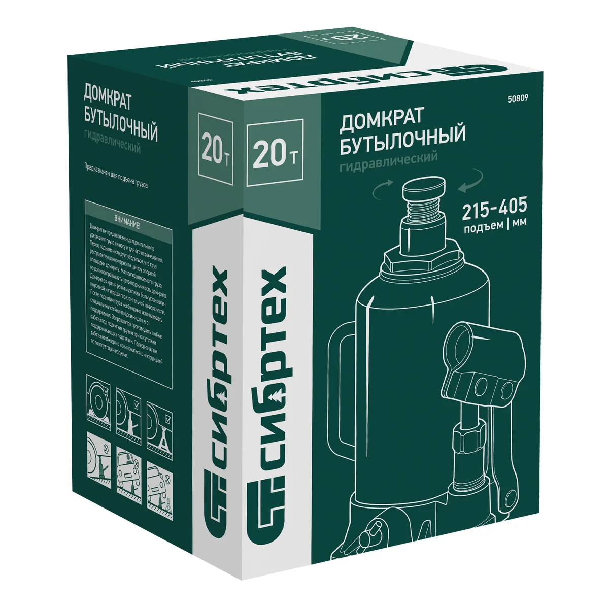 Домкрат гидравлический бутылочный, 20 т, 215-405 мм Сибртех 50809
