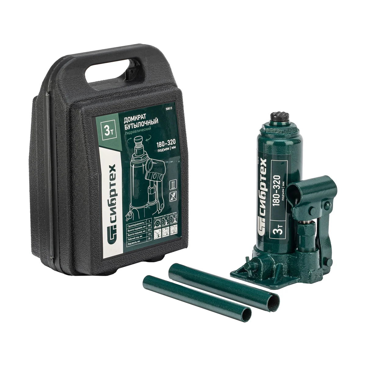 Домкрат гидравлический бутылочный, 3 т, 180-320 мм, в пласт. кейсе Сибртех 50813