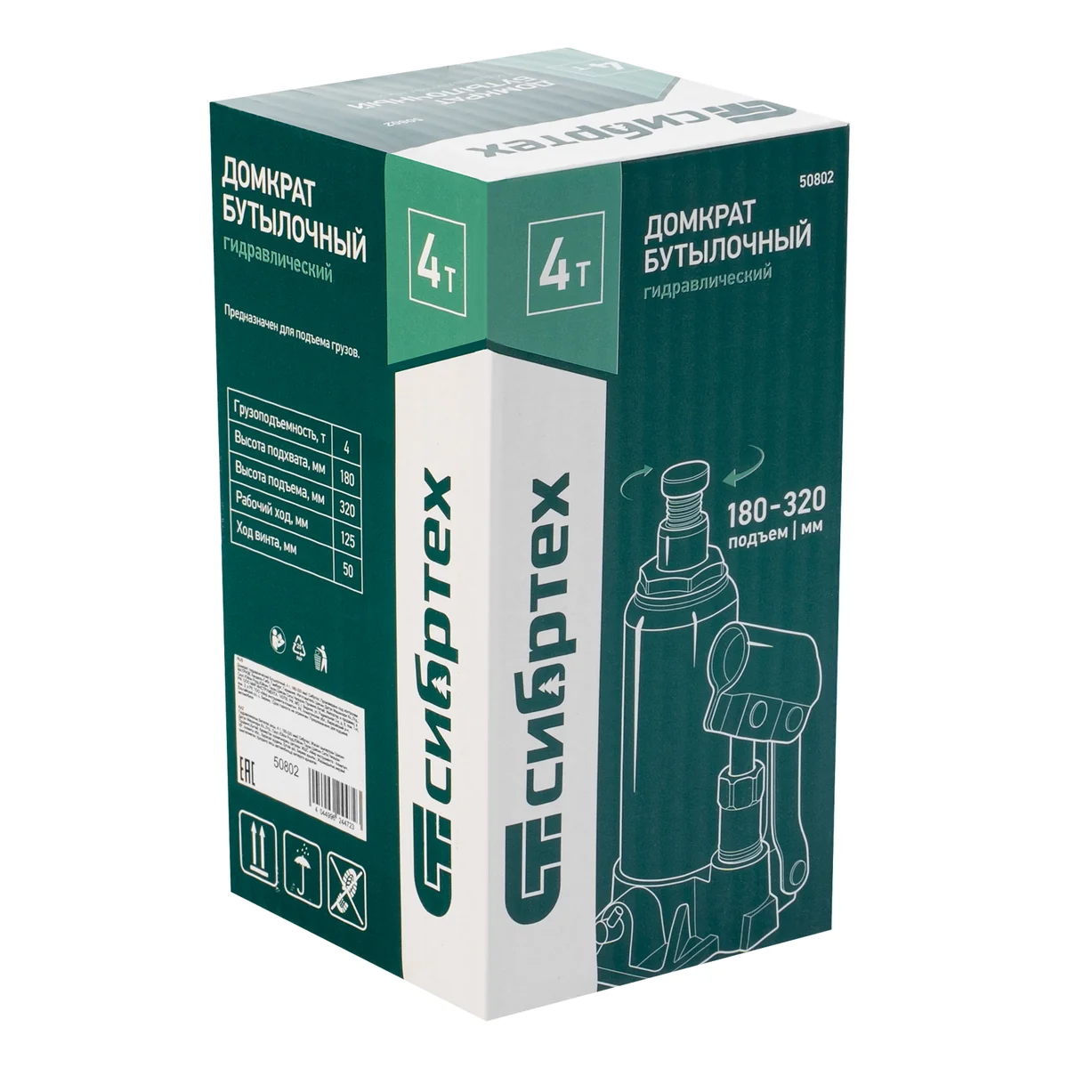 Домкрат гидравлический бутылочный, 4 т, 180-320 мм Сибртех 50802