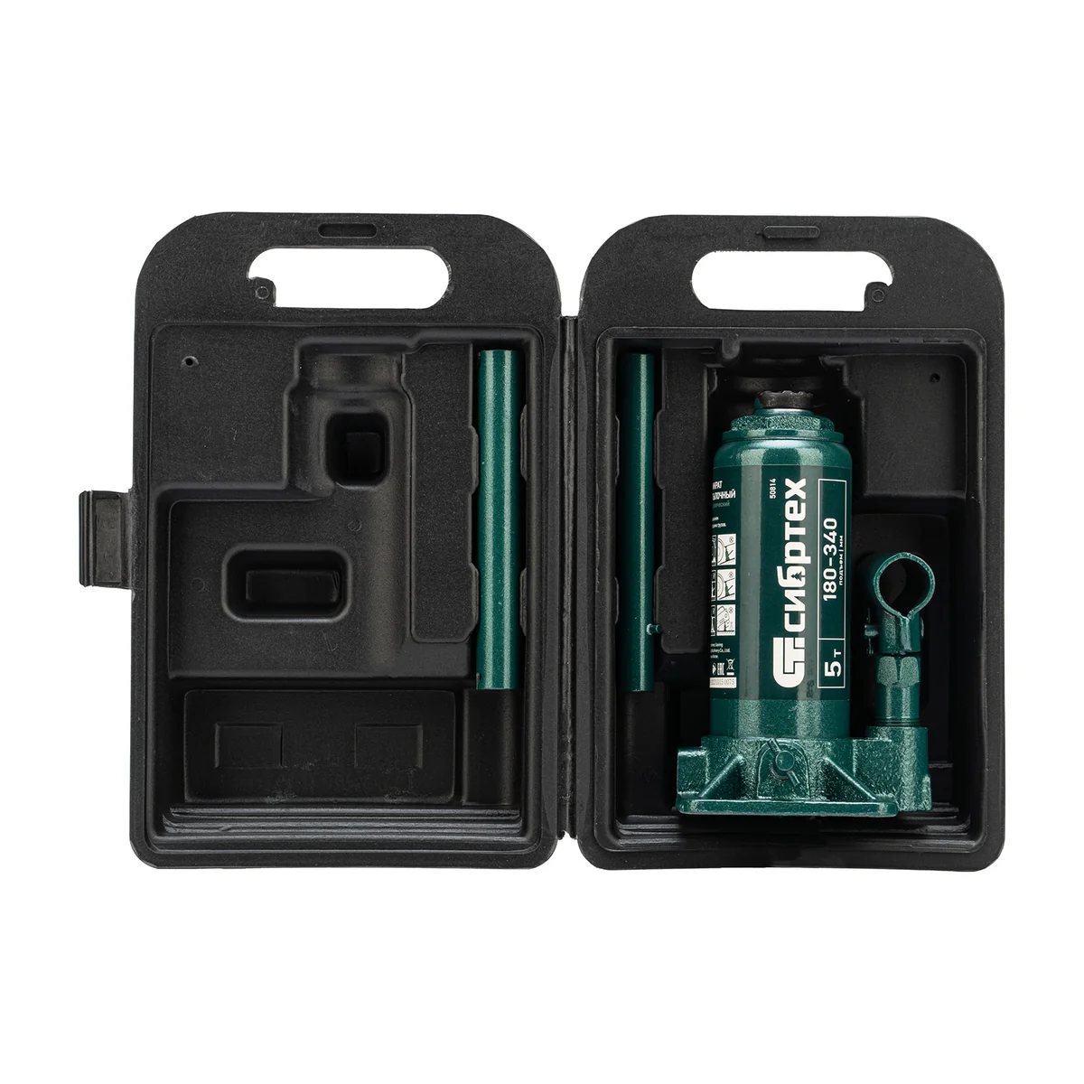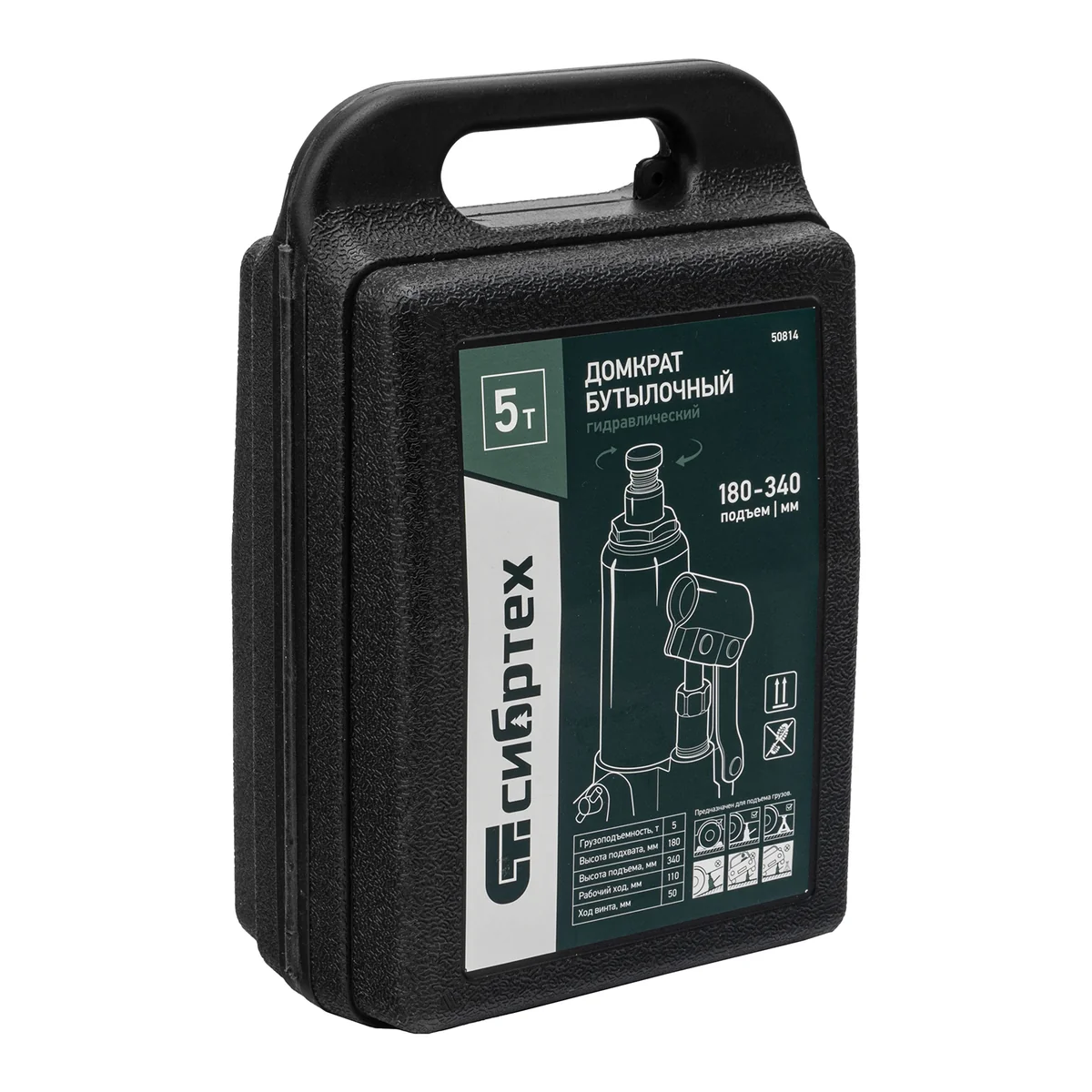 Домкрат гидравлический бутылочный, 5 т, 180-340 мм, в пласт. кейсе Сибртех 50814