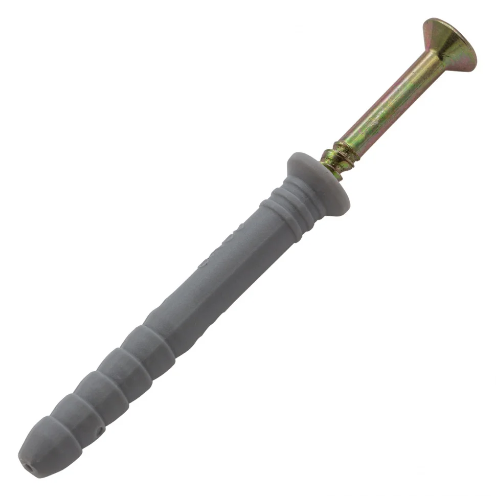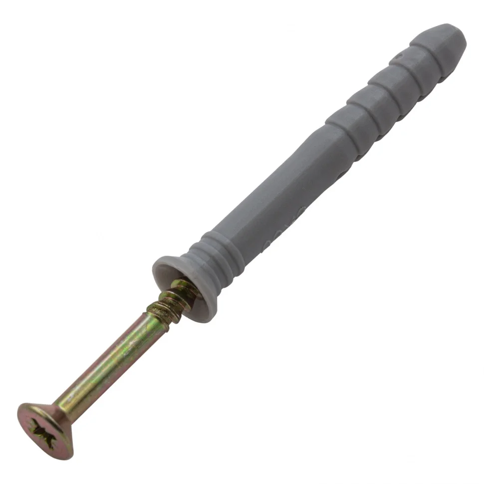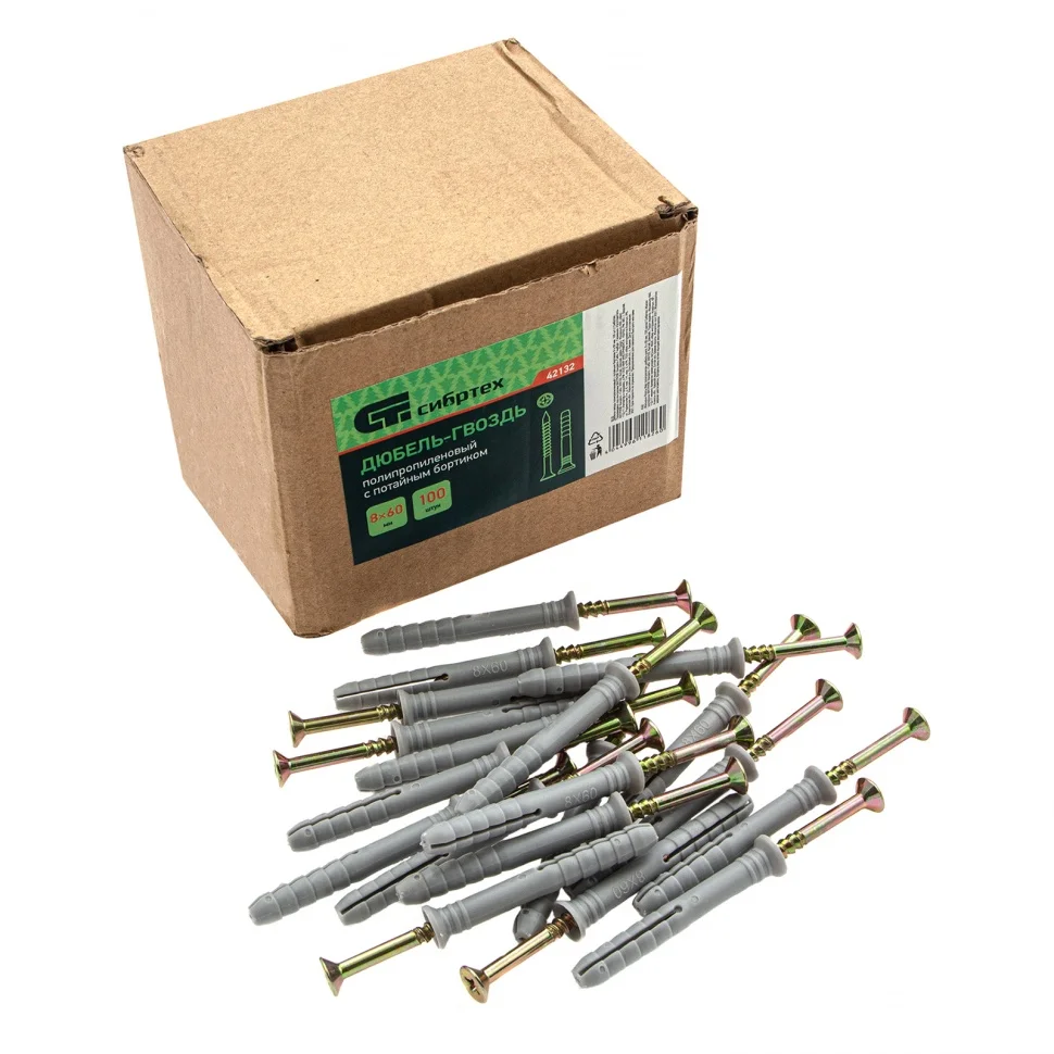 Полипропиленовый дюбель-гвоздь Сибртех 42132 с потайным бортиком, 8 х 60 мм, 100 шт., предназначен для надежной фиксации различных деталей и конструкций на основаниях из бетона, кирпича или камня. Потайной бортик дюбеля обеспечивает максимальный контакт крепежа с прикрепляемым материалом. Дюбель-гвоздь применяется при проведении строительных и ремонтных работ, прокладке сетей, а также для решения бытовых задач.ПреимуществаДюбель выполнен из полипропилена, не боится воздействия ультрафиолета.Гвоздь с ударной резьбой обеспечивает быстрый монтаж (дюбель вбивается молотком).Ребра на дюбеле гарантируют прочную фиксацию в толще материала.Цинковое покрытие защищает крепеж от образования коррозии.В комплект входят саморезы с шляпкой типоразмера PZ2.В упаковке 100 штук, которых хватит надолго.