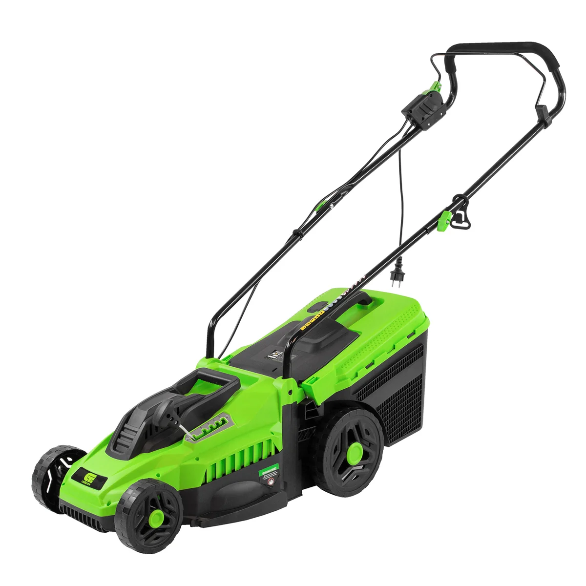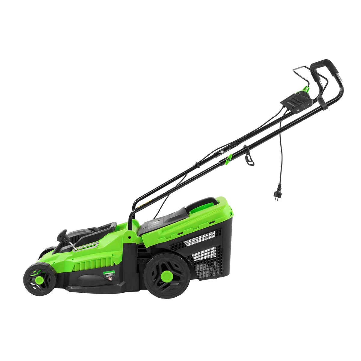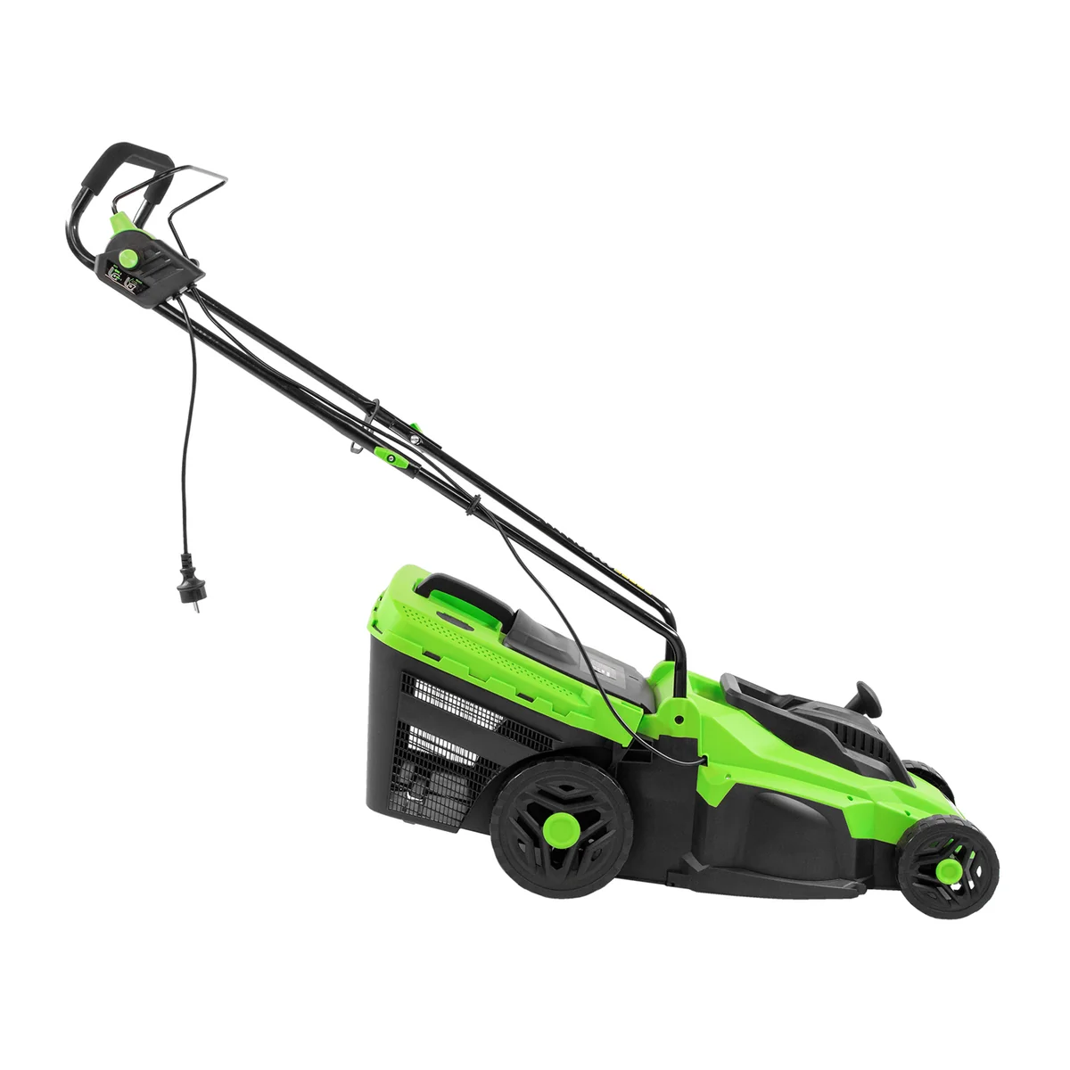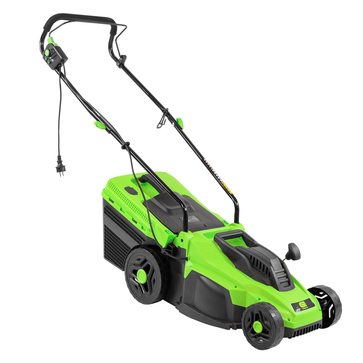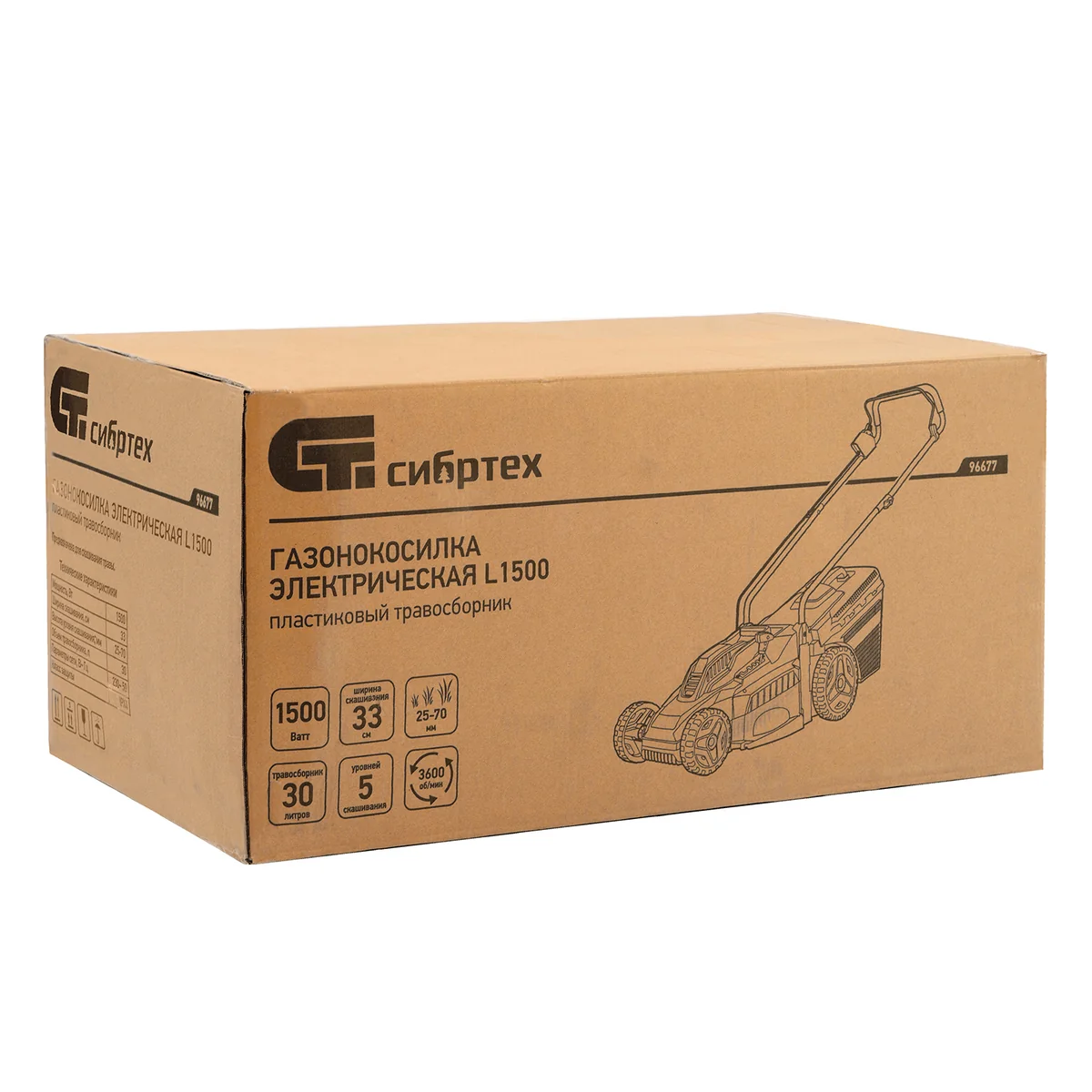Электрическая газонокосилка Сибртех L1500 96677 мощностью 1500 Вт, с 5 уровнями скашивания, с травосборником объемом 35 л, предназначена для подрезания невысокой травы. Ширина прохода 33 см и мощность мотора 1,5 кВт позволяют за 1 час обрабатывать почти 1200 кв.м.Косилка не наносит ущерб природе и проста в применении, т.к. работает без масла и топлива, а ее обслуживание сведено к нескольким простым шагам. Именно поэтому она подходит даже начинающим пользователям.Настройка высоты скашивания находится в диапазоне 30–70 мм. Перемещая рычаг в одно из 5 положений, Вы сможете создать несколько типов ландшафта на своем участке, например, партерный, садово-парковый или спортивный.ПреимуществаТермозащита — косилка выключается при перегреве, что продлевает срок службы двигателя и предотвращает его поломку.Блокировка случайного пуска — электродвигатель включается только при длительном удержании кнопки запуска одновременно с нажатием скобы выключения.Комфортная эксплуатация — для управления используется скоба, а не рычаг, как на большинстве электрокосилок, что делает работу удобной, особенно для левшей.Надежная работа — ременной привод обеспечивает эффективную передачу мощности, а в при необходимости детали меняются по отдельности.Наличие травосборника — трава собирается в резервуар объемом 35 л, имеется индикатор наполненности.Высокое качество сборки — дека изготовлена из ударопрочного пластика, устойчивого к внешним повреждениям.Повышенная проходимость — увеличенные задние колеса улучшают маневренность косилки и облегчают повороты.Забота о здоровье — покрытие из вспененной резины на рукоятке гасит вибрации и позволяет косить траву длительное время.Отдельная ручка для переноски — косилку легко поднимать за широкий пластиковый держатель.Удобное размещение — рукоятка косилки складывается, поэтому она не занимает много места в транспорте или месте хранения.Узнаваемые подшипники — маркировка производителя указывает на качество сборочного узла и облегчают поиск детали при необходимости замены.Небольшой вес 12 кг — управлять газонокосилкой с комфортом смогут даже пожилые люди.