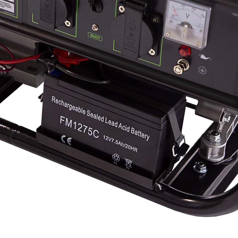 Генератор предназначен для автономного электроснабжения в условиях отсутствия бытовой электросети.ОсобенностиМощный и экономичный двигатель.Надежный альтернатор.Указатель уровня топлива.Индикатор низкого уровня масла.Вольтметр.ПреимуществаЭлектростартер.Аккумулятор в комплекте.Защита от перегрузки и короткого замыкания.Автоматический регулятор напряжения AVR.Защита от работы при низком уровне масла.КомплектностьГенератор - 1 шт.Ключ свечной - 1 шт.Вилка 230В/16А - 2 шт.Ключ зажигания- 2 шт.Руководство по эксплуатации с гарантийным талоном - 1 шт.