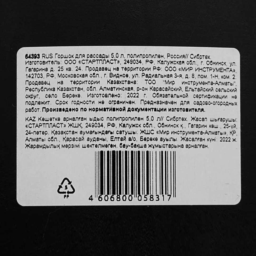 Полипропиленовый горшок для рассады Сибртех 64393 объемом 5 л поможет вырастить рассаду дома для последующей высадки на огороде. Универсальный горшок можно использовать для посадки культур любого типа: садовых, огородных, декоративных.ПреимуществаДолговечность — горшок из полипропилена выдерживает многократное использование.Функциональность — корни растений надежно защищены от повреждений, а благодаря дренажным отверстиям в горшке сохраняется оптимальный уровень влажности.Экологичность — полипропилен не содержит вредных примесей, поэтому не вредит растениям и окружающей среде.Удобная эксплуатация — круглая форма горшка позволяет легко засыпать землю и извлекать саженец, а благодаря утолщенной изогнутой кромке его легко перемещать.