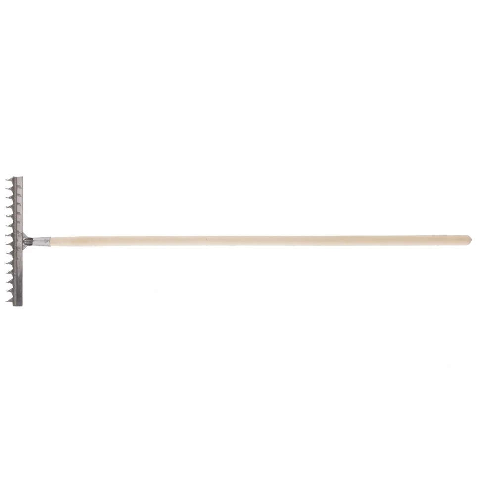 Грабли из нержавеющей стали Сибртех 61754 длиной 1300 мм и шириной 290 мм, с 12 витыми зубьями, незаменимы при уходе за дачным участком. Они служат для рыхления и выравнивания почвы. Зубья с утолщенным профилем повышают надежность инструмента.ПреимуществаРабочая часть и тулейка выполнены из прочной нержавеющей стали, а значит, инструмент надежен и долговечен.Тулейка крепится к основанию двумя заклепками, что увеличивает прочность конструкции.Витые зубья с заостренными концами легко разрезают почву, обеспечивая качественную аэрацию даже при высоких нагрузках.Грабли установлены на деревянный черенок и полностью готовы к использованию.