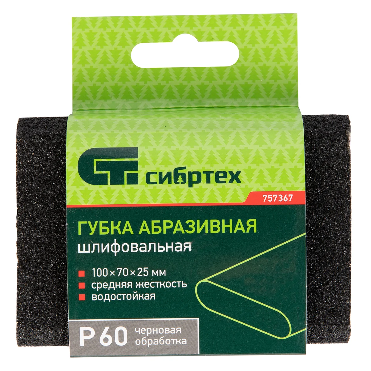 Губка для шлифования, 100 х 70 х 25 мм, овал, Средняя жесткость, P 60 Сибртех 757367