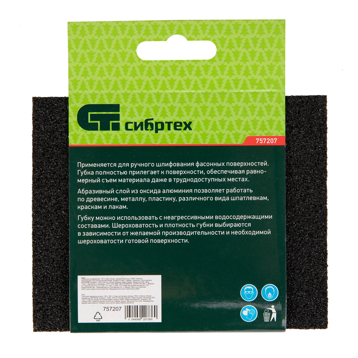 Губка для шлифования, 120 х 100 х 10 мм, средняя жесткость, P 60, Сибртех 757207