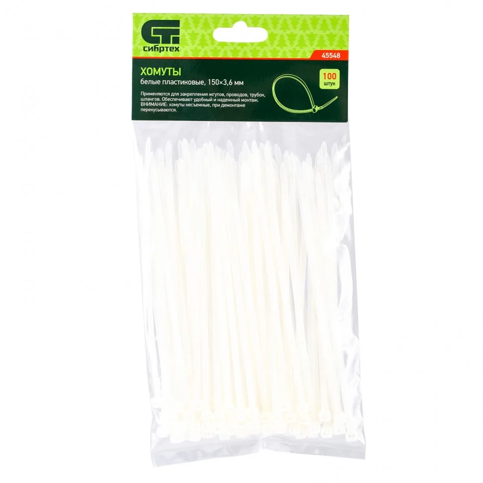 Крепежный инструмент » Сибртех Хомуты, 150 х 3.6 мм, пластиковые, белые, 100 шт 45548