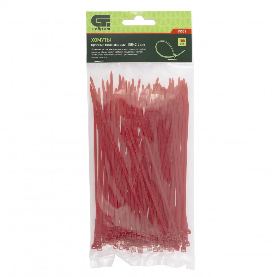 Крепежный инструмент » Сибртех Хомуты, 150 x 2.5 мм, пластиковые, красные, 100 шт 45501