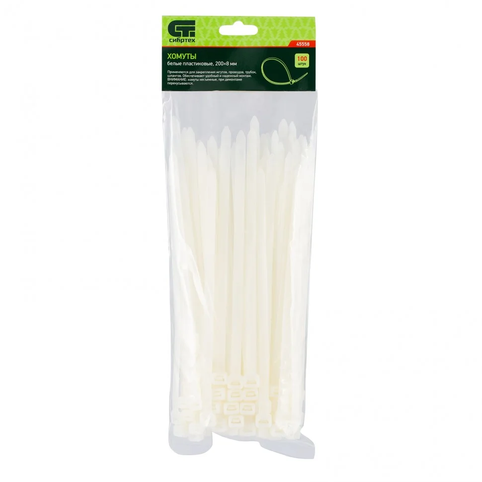 Крепежный инструмент » Сибртех Хомуты, 200 х 8 мм, пластиковые, белые, 100 шт 45558