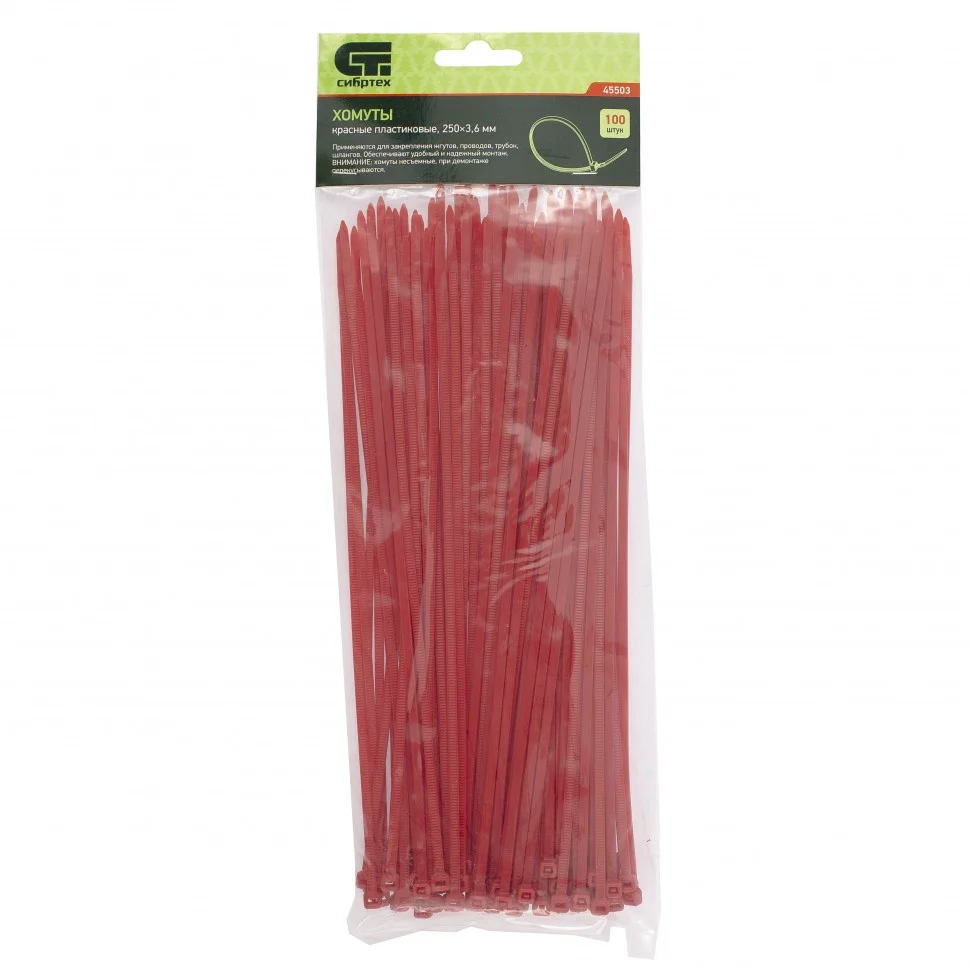 Хомуты, 250 x 3.6 мм, пластиковые, красные, 100 шт Сибртех 45503