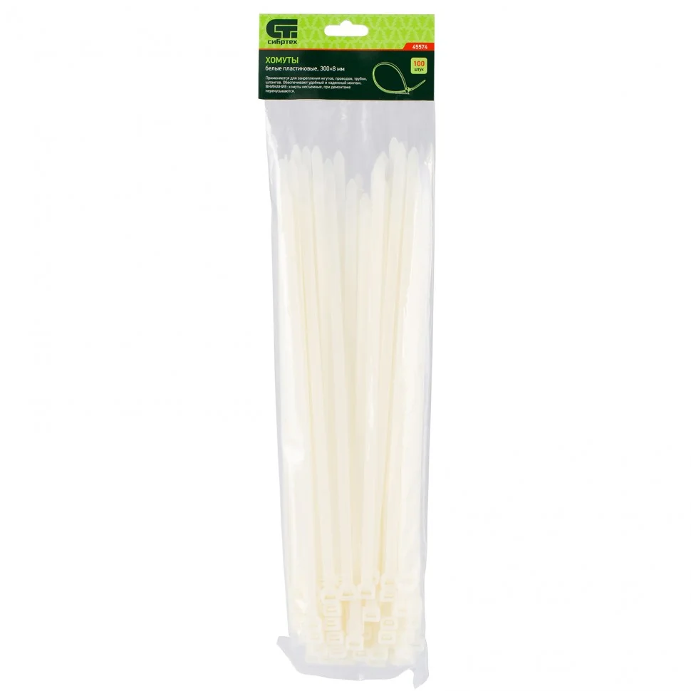 Крепежный инструмент » Сибртех Хомуты, 300 х 8 мм, пластиковые, белые, 100 шт 45574