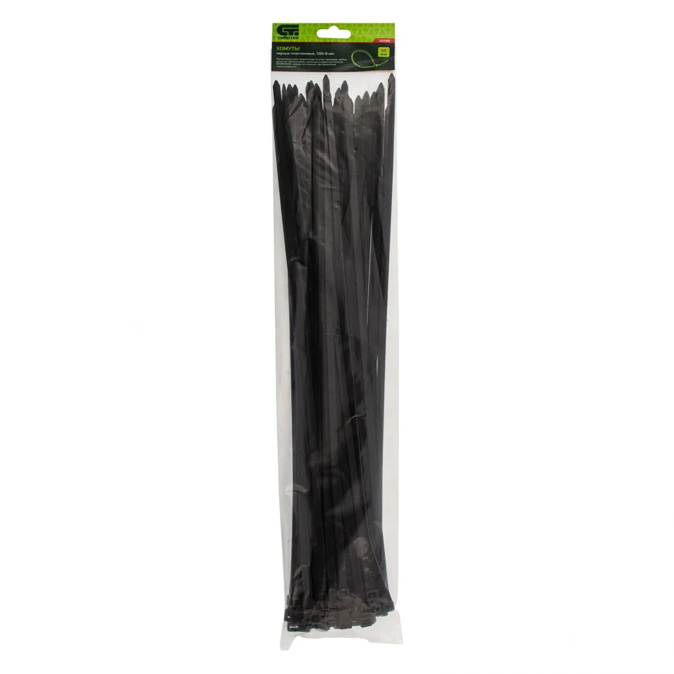 Крепежный инструмент » Сибртех Хомуты, 500 х 8 мм, пластиковые, черные, 50 шт 45588