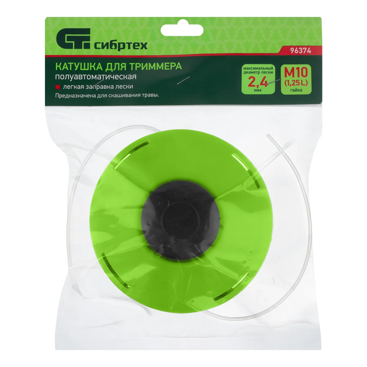 Полуавтоматическая катушка Сибртех 96375 с легкой заправкой лески крепится на вал бензинового или электрического триммера при помощи гайки М10 х 1,25 мм с левой резьбой. Заправляется леской диаметром до 2,7 мм, что позволяет использовать ее для подравнивания газона и скашивания сорняков. Катушка пригодится владельцам загородных участков.ПреимуществаЛегкая заправка — благодаря продуманной конструкции катушки не нужно разбирать корпус при подготовке к работе.Быстрое обновление лески — не нужно выключать триммер, достаточно слегка ударить катушкой о землю.Резьбовое крепление — установка катушки на вал триммера осуществляется без дополнительного инструмента.