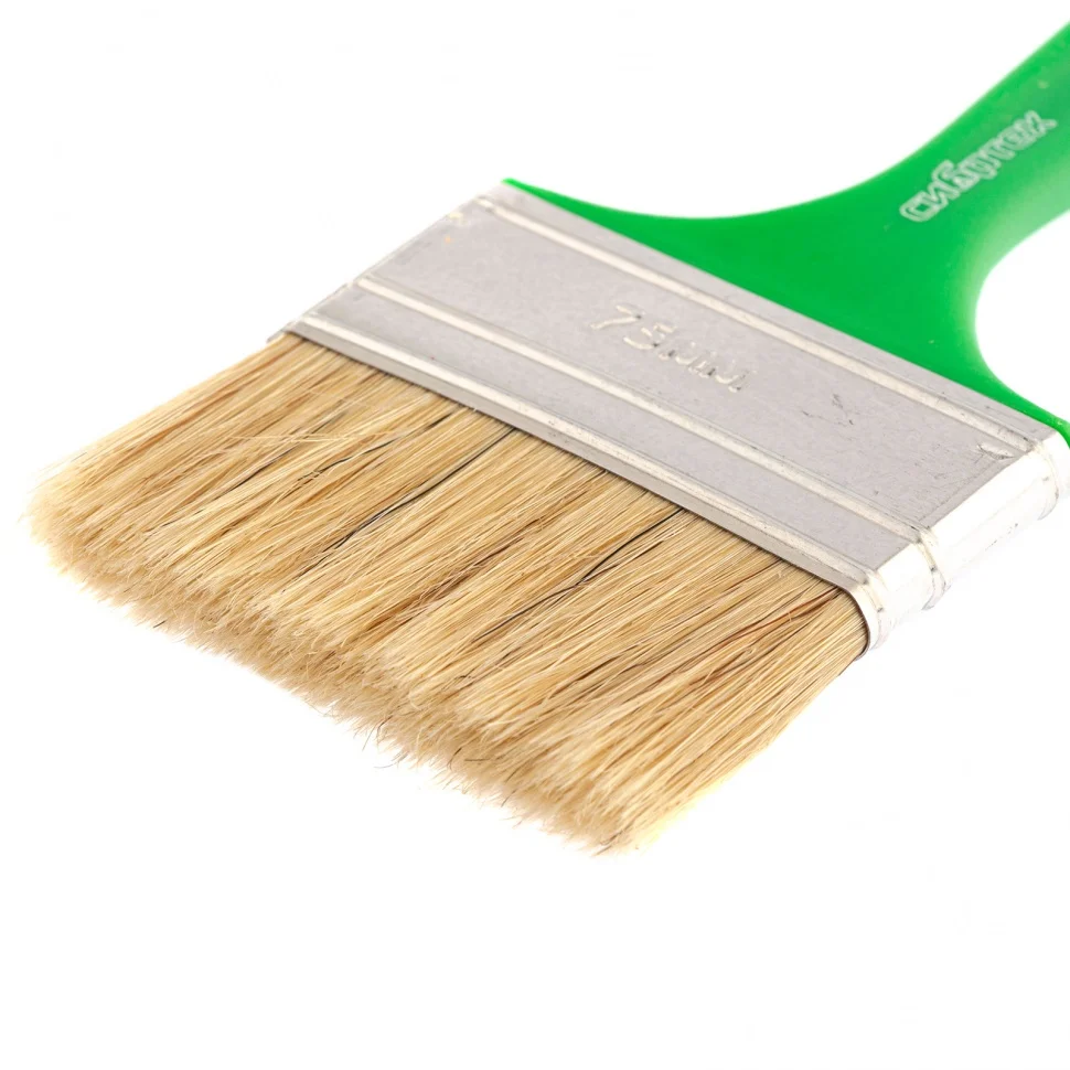 Кисть флейцевая Сибртех «Эксперт» 83309 с натуральной щетиной и пластиковой ручкой, 75 х 8 мм, используется при проведении отделочных работ — окрашивания поверхностей, создания гладкого или глянцевого слоя. Подходит для обработки небольших участков. Изготовлена из натуральной свиной щетины с добавлением искусственной, поэтому подходит для различных видов ЛКМ.ПреимуществаЩетина HANKOW двойной выварки позволяет получить декоративное покрытие высокого качества.Расщепленная на концах щетина обеспечивают хорошие краскообменные свойства.Оптимально подобранный клеевой состав, клинья у основания рукоятки и металлический бандаж надежно удерживают щетину.Благодаря антикоррозионному покрытию бандаж не ржавеет при длительном контакте с ЛКМ и водой.На рукоятке имеется отверстие для подвешивания, поэтому кисть удобно хранить.Пластиковые клинья увеличивают срок службы кисти в несколько раз, предотвращают деформацию инструмента при замачивании.Клеевой состав на основе эпоксидной смолы, изготовленный по уникальному рецепту, фиксирует щетину при работе с агрессивными ЛКМ.