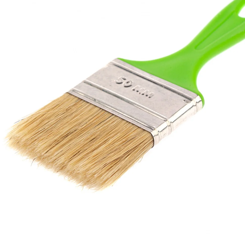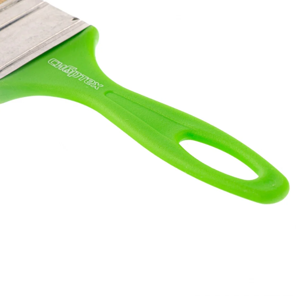 Кисть флейцевая Сибртех «Евро» 83302 шириной 50 мм и толщиной 8 мм, с натуральной щетиной и пластиковой ручкой, предназначена для первичного окрашивания либо создания финишного слоя на небольших или узких участках поверхности. Кисть обладает хорошими краскообменными качествами и подходит для любых видов лакокрасочных материалов (ЛКМ).ПреимуществаНатуральная щетина двойной выварки обеспечивает высокое качество декоративного покрытия.Кисть хорошо поглощает и отдает краску, т.к. щетинки расщеплены на концах.Натуральная щетина устойчива к воздействию агрессивных сред и не теряет рабочих свойств при контакте с ЛКМ на основе растворителей.Оптимально подобранный клеевой состав, клинья и металлический бандаж надежно удерживают щетину.Бандаж имеет антикоррозионное покрытие, поэтому кисть можно замачивать в воде и растворителе.Легкая пластиковая рукоятка не утяжеляет кисть и удобно ложится в руку.На рукоятке есть отверстие, за которое кисть можно подвешивать.