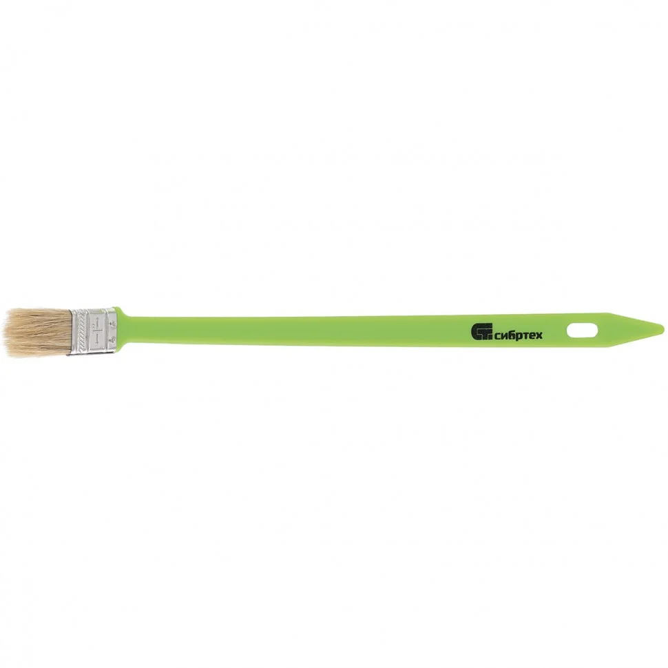 Радиаторная кисть Сибртех 83855 шириной 25 мм, с натуральной щетиной и пластиковой ручкой, позволяет окрашивать радиаторы, трубы, проволочные конструкции. Особенно удобна для покраски углов и стыков пола или потолка со стенами. Удлиненная ручка облегчает проведение малярных работ. Натуральная щетина с добавлением искусственного ворса устойчива к деформации и сохраняет упругость и краскообменные качества при использовании масляных красок и эмалей.ПреимуществаНатуральная светлая щетина двойной выварки обладает хорошей краскоотдачей и износоустойчивостью, обеспечивая равномерное распределение краски по поверхностиКлей, пластиковые клинья и металлический бандаж надежно скрепляют щетину, что исключает ее выпадение.Кисть набирает и удерживает большой объем краски благодаря расщепленным кончикам щетинок.Инструмент выдерживает многократное использование, т.к. металлический бандаж защищен от коррозии специальным покрытием.Кисть можно сушить и хранить в подвешенном положении благодаря отверстию в рукоятке.