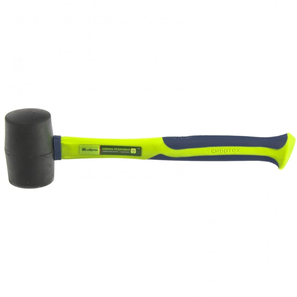 Киянка резиновая, 450 г, черная резина, фибергласовая рукоятка Сибртех 11164