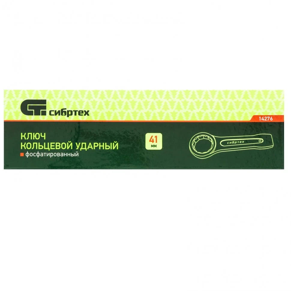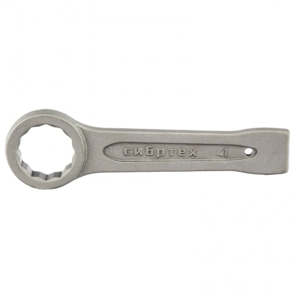 Кольцевой ударный ключ Сибртех 14276, 41 мм, позволяет откручивать и закручивать резьбовые соединения соответствующего размера. Он имеет 12-гранный профиль, за счет чего надежно удерживает головку крепежа. Инструмент удобен для работы в ограниченном пространстве — для перестановки его достаточно повернуть на 30 градусов. Ключ применяется в слесарных мастерских, будет также полезен во время ремонта оборудования или автомобилей.ПреимуществаОдна сторона ключа утолщена и предназначена для ударных воздействий, поэтому он эффективен при работе с туго затянутыми крепежами.Инструмент изготовлен из прочной углеродистой стали 45, выдерживает высокие нагрузки.При производстве ключа использована технология фосфатирования, поэтому он устойчив к коррозии и прослужит долго.