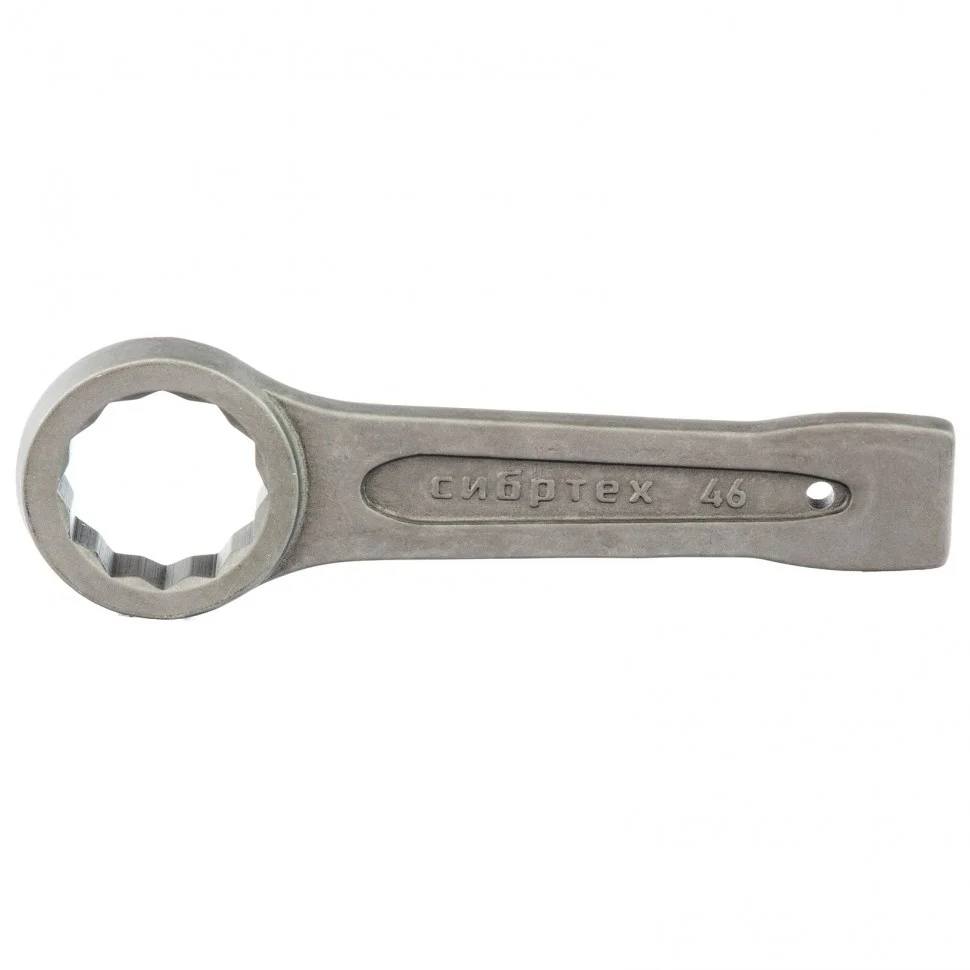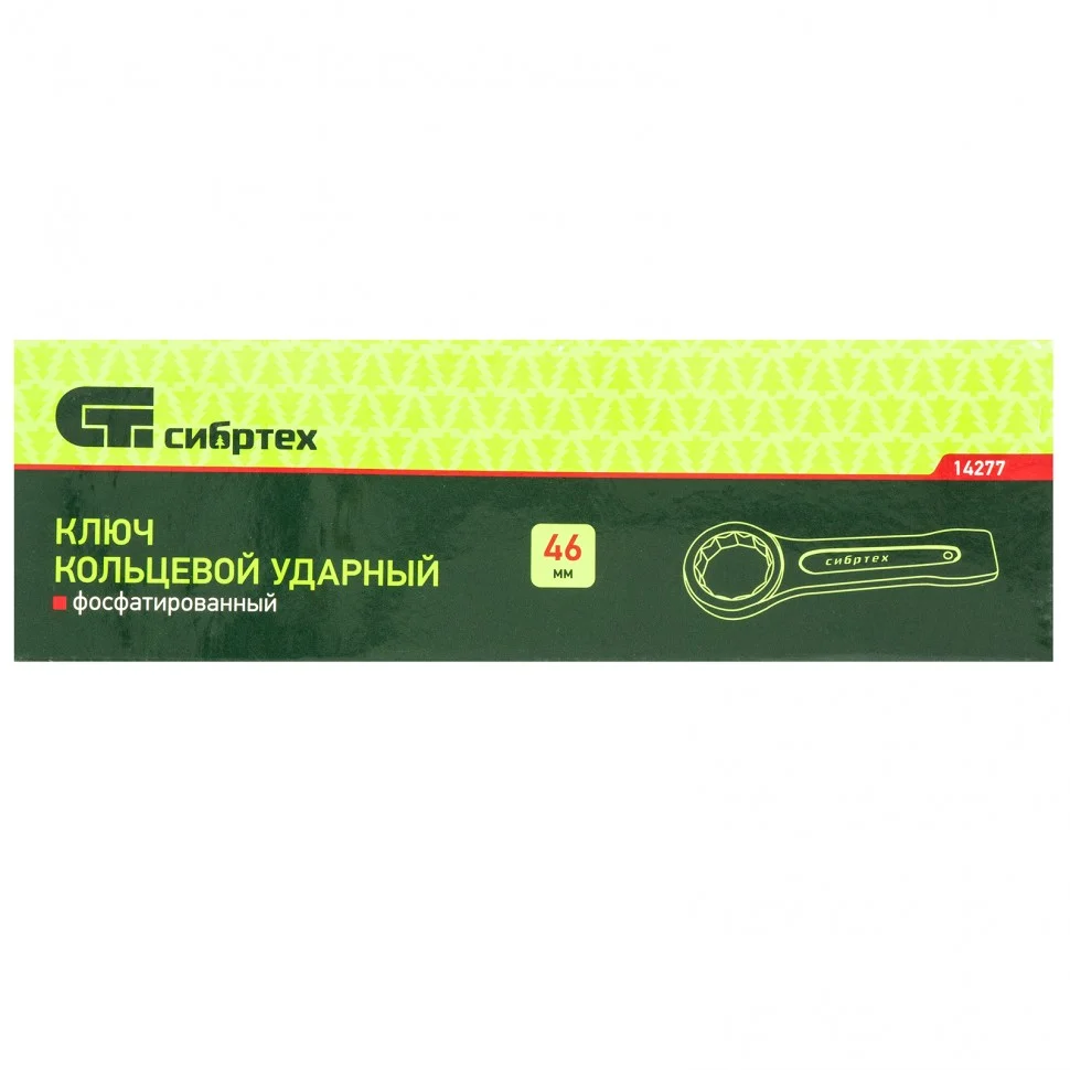 Кольцевой ударный ключ Сибртех 14277, 46 мм, позволяет откручивать и закручивать резьбовые соединения соответствующего размера. Он имеет 12-гранный профиль, за счет чего надежно удерживает головку крепежа. Инструмент удобен для работы в ограниченном пространстве — для перестановки его достаточно повернуть на 30 градусов. Ключ применяется в слесарных мастерских, будет также полезен во время ремонта оборудования или автомобилей.ПреимуществаОдна сторона ключа утолщена и предназначена для ударных воздействий, поэтому он эффективен при работе с туго затянутыми крепежами.Инструмент изготовлен из прочной углеродистой стали 45, выдерживает высокие нагрузки.При производстве ключа использована технология фосфатирования, поэтому он устойчив к коррозии и прослужит долго.