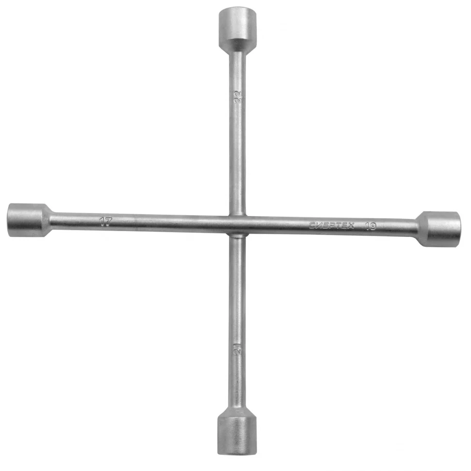 Баллонный ключ-крест Сибртех 14257 с толщиной прутьев 14 мм и размерами головок 17, 19, 21 и 22 мм используется для снятия и монтажа автомобильных колес. 4 несъемные шестигранные торцевые головки подходят для колесных гаек и болтов наиболее распространенных размеров. Инструмент будет полезен работникам станций шиномонтажа и автосервисов, а также пригодится автовладельцам.ПреимуществаУстойчивость к высоким нагрузкам — прутья толщиной 14 мм сварены под прямым углом.Прочность и высокий ресурс — ключ изготовлен из углеродистой стали 40, твердость рабочих частей составляет 41 HRC.Антикоррозионная защита — поверхность инструмента хромирована.
