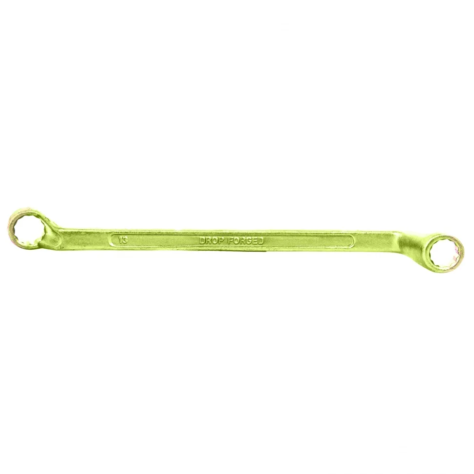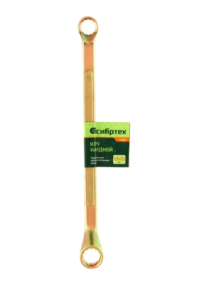Накидной ключ Сибртех 14620 с покрытием из желтого цинка используется для монтажа и демонтажа резьбовых соединений с шестигранной головкой диаметром 12 и 13 мм. Позволяет осуществлять монтажные работы в гараже, на небольшом производстве и в быту. Кольцевой профиль полностью захватывает шляпку крепежного элемента, поэтому ключом легко откручивать даже закисшие болты, гайки и т.д.ПреимуществаКлюч изготовлен из качественной углеродистой стали 45, поэтому обладает прочностью и прослужит долгое время.Твердость рабочих частей составляет 42 HRC, что соответствует требованиям ГОСТ (41-46 HRC).Покрытие из желтого цинка гарантирует защиту от образования коррозии.12-гранный профиль каждого кольцевого зева обеспечивает надежный захват крепежа по всему периметру и сводит к минимуму риск повреждения его граней.Рабочие части, смещенные относительно рукоятки, позволяют работать ключом в труднодоступных местах.
