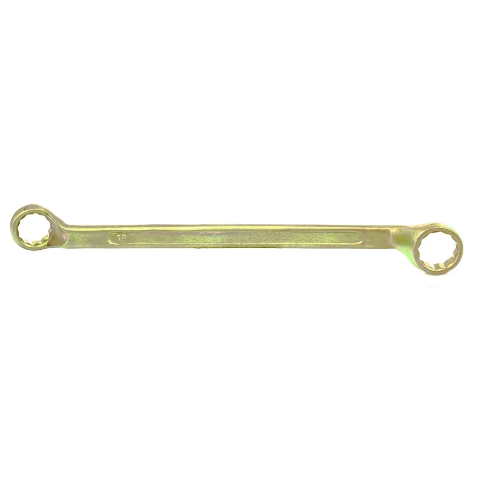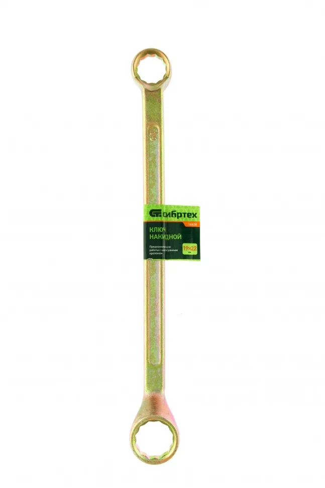 Накидной ключ Сибртех 14628 с покрытием из желтого цинка используется для монтажа и демонтажа резьбовых соединений с шестигранной головкой диаметром 19 и 22 мм. Позволяет осуществлять монтажные работы в гараже, на небольшом производстве и в быту. Кольцевой профиль полностью захватывает шляпку крепежного элемента, поэтому ключом легко откручивать даже закисшие болты, гайки и т.д.ПреимуществаКлюч изготовлен из качественной углеродистой стали 45, поэтому обладает прочностью и прослужит долгое время.Твердость рабочих частей составляет 42 HRC, что соответствует требованиям ГОСТ (41-46 HRC).Покрытие из желтого цинка гарантирует защиту от образования коррозии.12-гранный профиль каждого кольцевого зева обеспечивает надежный захват крепежа по всему периметру и сводит к минимуму риск повреждения его граней.Рабочие части, смещенные относительно рукоятки, позволяют работать ключом в труднодоступных местах.