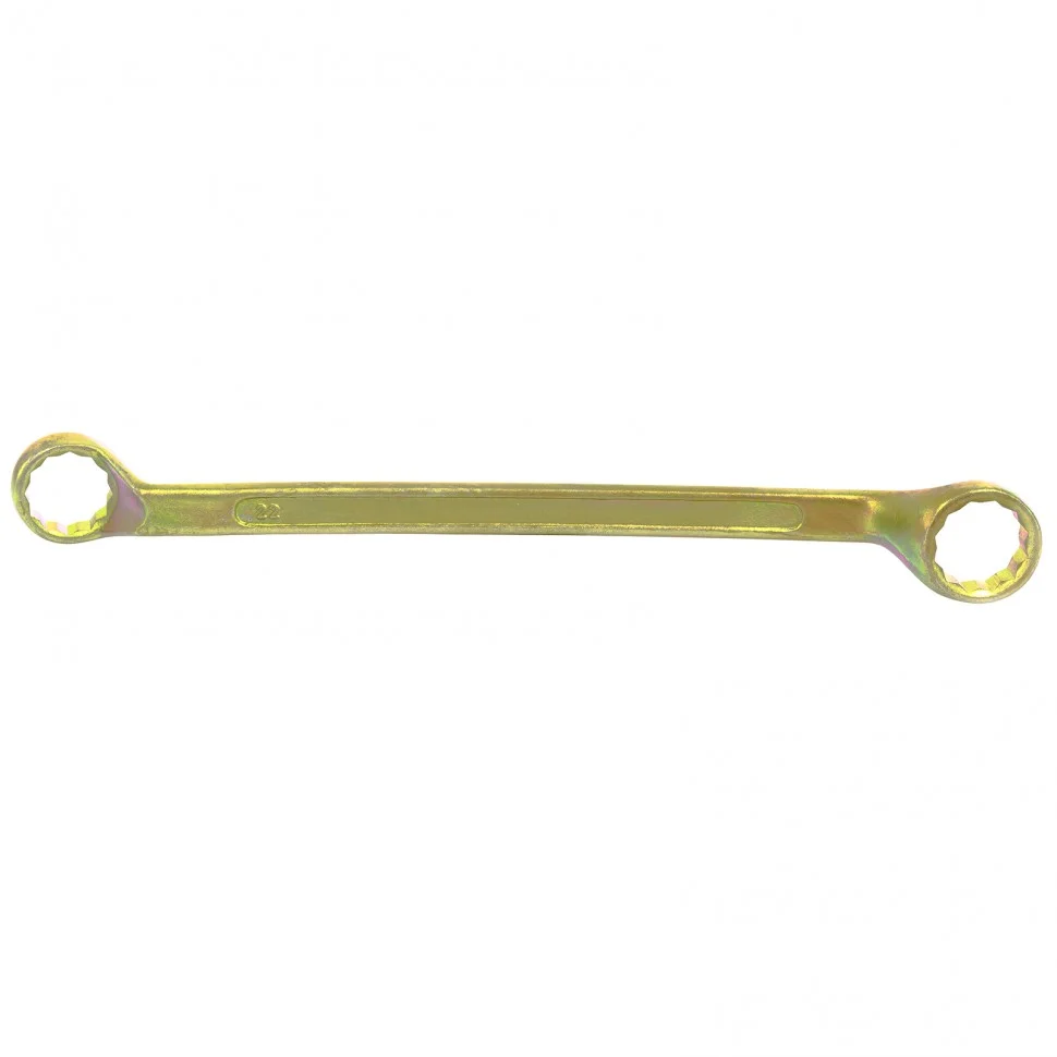 Накидной ключ Сибртех 14632 с покрытием из желтого цинка используется для монтажа и демонтажа резьбовых соединений с шестигранной головкой диаметром 22 и 24 мм. Позволяет осуществлять монтажные работы в гараже, на небольшом производстве и в быту. Кольцевой профиль полностью захватывает шляпку крепежного элемента, поэтому ключом легко откручивать даже закисшие болты, гайки и т.д.ПреимуществаКлюч изготовлен из качественной углеродистой стали 45, поэтому обладает прочностью и прослужит долгое время.Твердость рабочих частей составляет 42 HRC, что соответствует требованиям ГОСТ (41-46 HRC).Покрытие из желтого цинка гарантирует защиту от образования коррозии.12-гранный профиль каждого кольцевого зева обеспечивает надежный захват крепежа по всему периметру и сводит к минимуму риск повреждения его граней.Рабочие части, смещенные относительно рукоятки, позволяют работать ключом в труднодоступных местах.