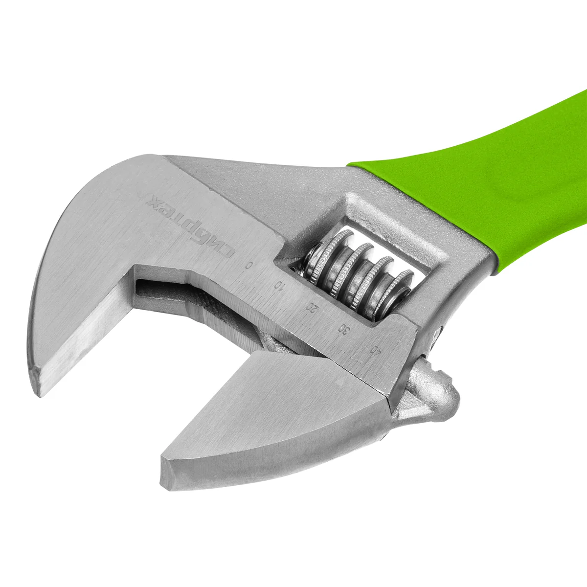 Никелированный разводной ключ Сибртех 15529, 375 мм, будет полезным помощником для сантехников, монтажников, газовщиков и других мастеров при необходимости работы с резьбовыми соединениями. Разводной ключ обладает важным преимуществом: он способен заменить гаечные ключи разного размера. Регулируемые зажимные губки позволяют работать как с мелким, так и крупным крепежом.ПреимуществаКлюч изготовлен из углеродистой стали 45 и прошел селективную закалку, это позволило добиться высокой прочности.Благодаря никелевому покрытию ключ устойчив к образованию коррозии.Точечная рикса на губке повышает удобство и точность проводимых работ.Обливная рукоятка не скользит в руке, поэтому с ключом комфортно работать.