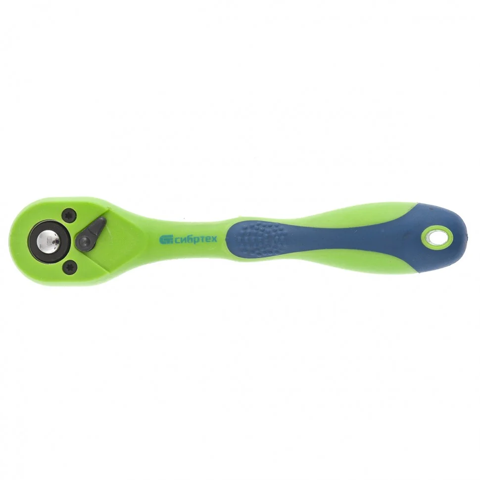 Ключ-трещотка Сибртех 14007 с двухкомпонентной рукояткой и присоединительным квадратом 1/4 дюйма используется с торцевыми головками, имеющими посадочное гнездо соответствующего размера. Предназначен для закручивания и раскручивания резьбовых соединений. Храповый механизм с 72 зубцами обеспечивает плавную работу инструмента. Ключ применяется для ремонта автомобилей, техники и оборудования, а также пригодится дома или на даче.Преимущества Инструмент прочен и долговечен, поскольку изготовлен из высококачественной стали хромованадиевой группы. Шаг трещотки составляет 5 градусов — удобно работать в ограниченном пространстве. Направление вращения меняется при помощи переключателя — инструментом можно не только закручивать болты и гайки, но и откручивать их. Механизм быстрого сброса экономит время, необходимое для замены торцевой головки. Присоединительный квадрат размером 1/4 дюйма оснащен металлическим шариком-держателем, не допускающим выпадение торцевых головок, адаптеров и удлинителей. Эргономичная двухкомпонентная рукоятка удобно лежит в руке, обеспечивая комфорт при эксплуатации.