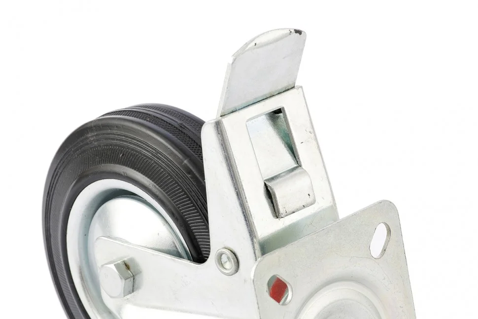 Поворотное колесо Сибртех 68723 диаметром 160 мм, грузоподъемностью 135 кг, с платформенным креплением и тормозом — движущая часть ручных тележек стандартной и увеличенной грузоподъемности. Поворотный механизм позволяет тележке маневрировать. Устойчивость к высоким и низким температурам, влаге и ультрафиолету позволяет использовать колесо как на улице, так и в складских или производственных помещениях.ПреимуществаКолесо выдерживает значительные нагрузки, т.к. его обод изготовлен из прочного полипропилена.Изделие оцинковано, поэтому не подвержено коррозии и механическим повреждениям.Передний тормоз препятствует нежелательному перемещению тележки.Колесо гасит вибрации, не издает шума и не царапает поверхность благодаря резиновой шине.Подшипниковая втулка облегчает вращение и препятствует преждевременному износу колеса.