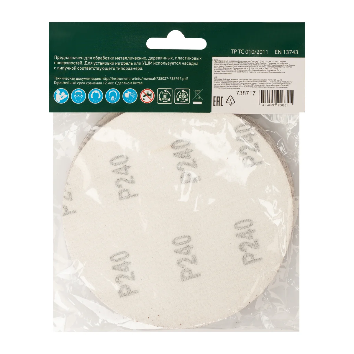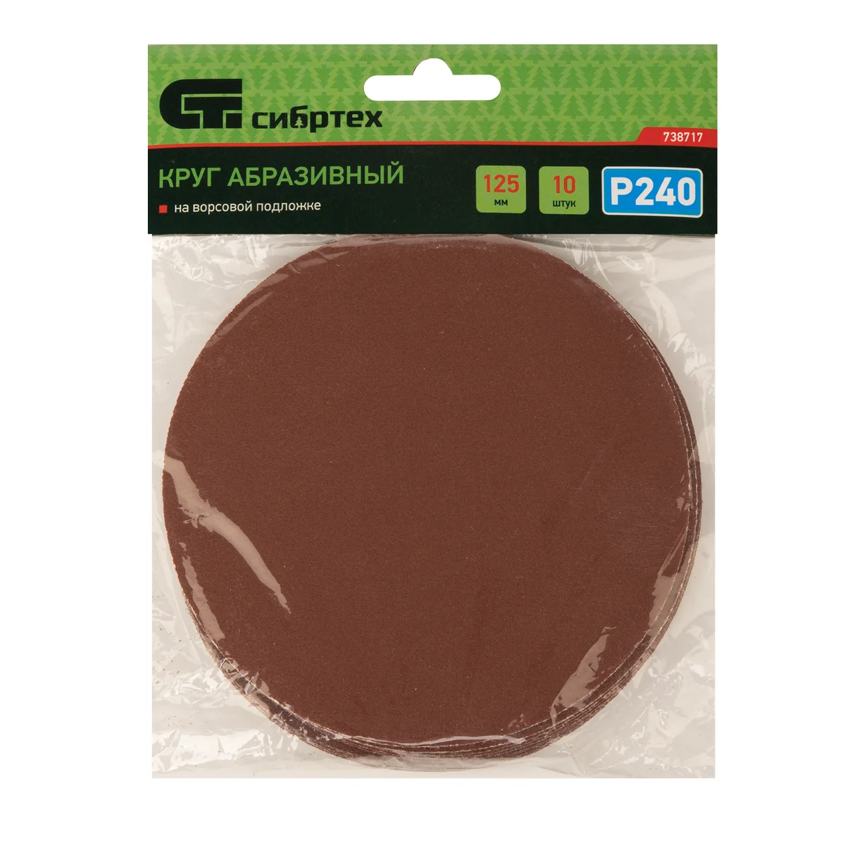Круг абразивный на ворсовой подложке под "липучку", P 240, 125 мм, 10 шт Сибртех 738717
