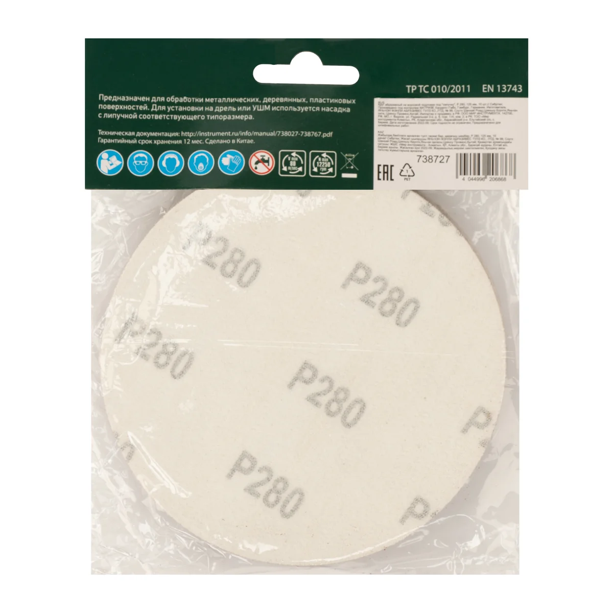 Круг абразивный на ворсовой подложке под "липучку", P 280, 125 мм, 10 шт Сибртех 738727