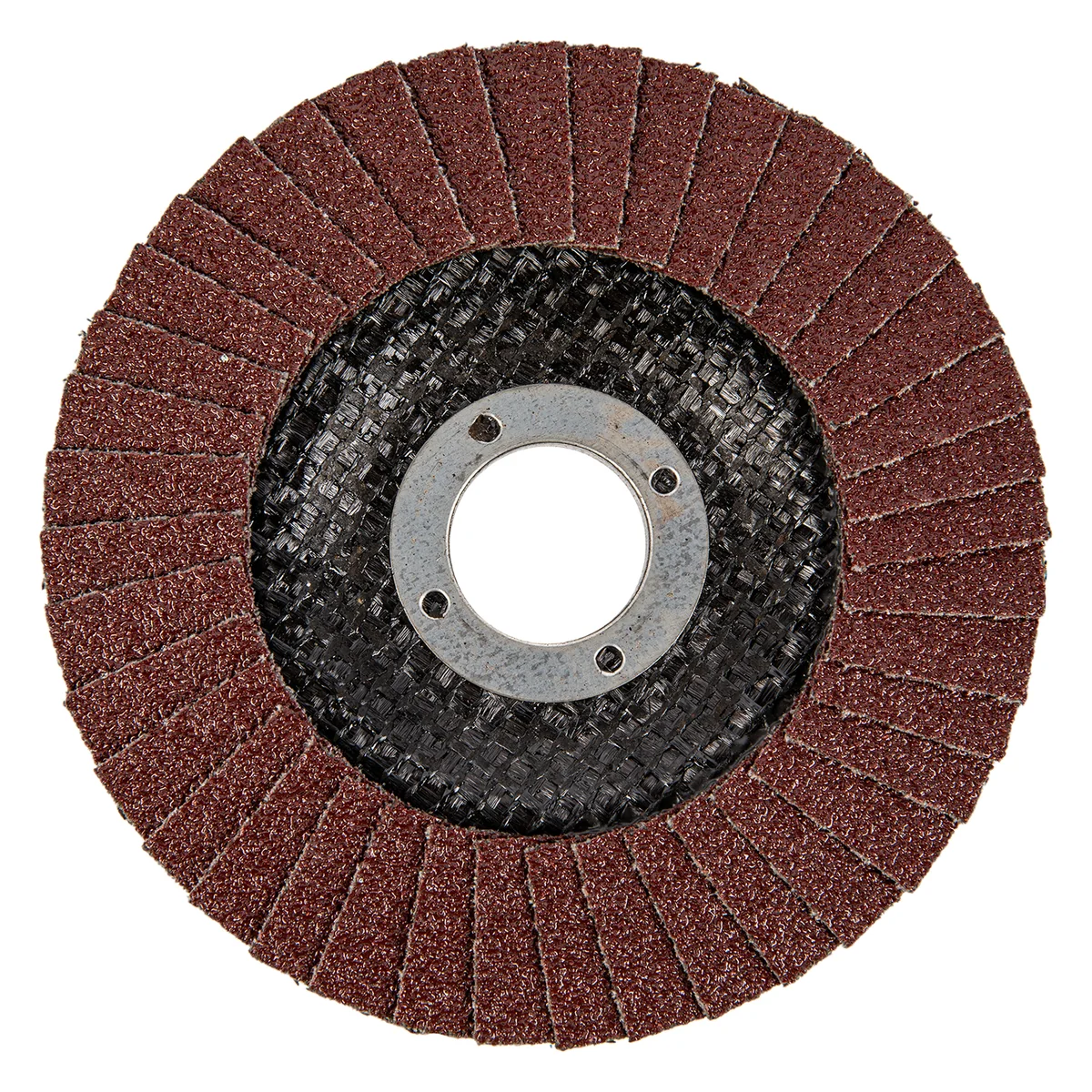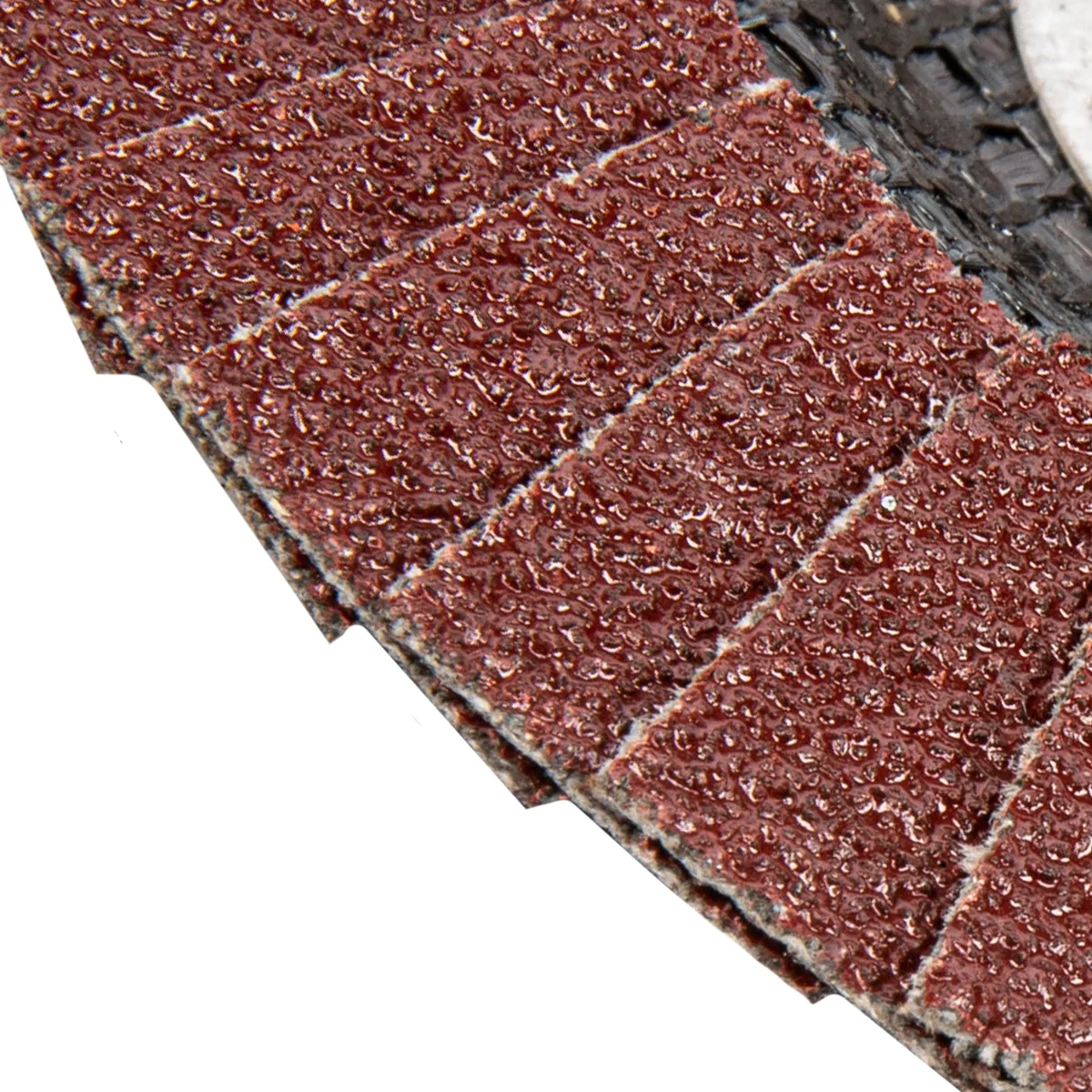 Круг лепестковый торцевой конический Сибртех 74079 с крупнозернистым абразивом Р80, 115 х 22,2 мм, устанавливается на углошлифовальные машины с соответствующим посадочным диаметром. Он используется для промежуточной обработки, торцевого и плоского шлифования древесины, металла, пластика. С помощью него можно выполнить зачистку сварных швов, подготовить поверхность к чистовой шлифовке, удалить заусенцы, снять краску, лак, ржавчину и т.д.ПреимуществаКруг конической формы оптимален для шлифовки труднодоступных мест и поверхностей со сложной формой.Универсальный абразив из оксида алюминия с заостренными зернами и твердой структурой позволяет эффективно шлифовать практически любые материалы.Посадочное кольцо защищено от образования ржавчины антикоррозионным покрытием.Основа круга выполнена из прочного стекловолокна, а лепестки с абразивом крепятся к ней синтетической смолой, поэтому круг надежен и долговечен.