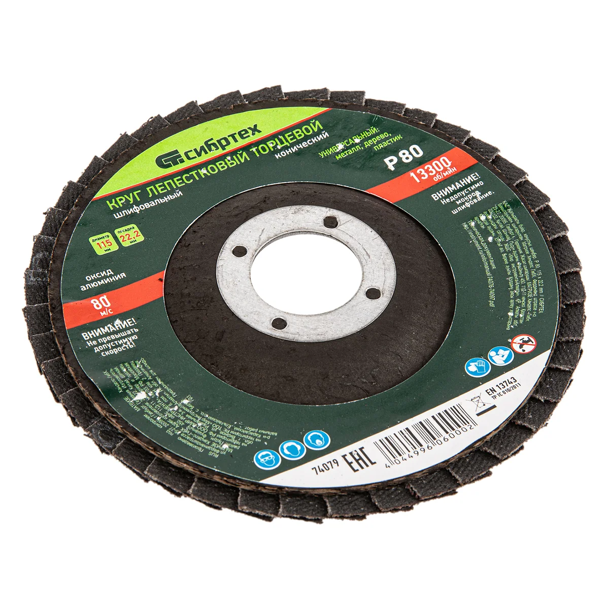 Круг лепестковый торцевой, конический, Р 80,115 х 22.2 мм Сибртех 74079