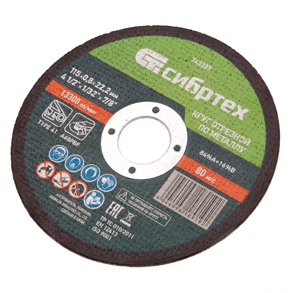 Отрезной круг по металлу Сибртех 743307, 115 х 0,8 х 22,2 мм, используется в качестве оснастки на УШМ для сухого реза изделий из углеродистых сталей: труб, арматуры, проволоки и т.д. Высокая производительность позволяет использовать круг как в быту, так и в частной мастерской или на небольших производствах.ПреимуществаАбразивные зерна из оксида алюминия имеют острые грани и легко справляются с резкой твердых материалов.Двухслойная усиленная стеклосетка придает кругу прочность на разрыв, что повышает безопасность работы.Бакелитовая связка с упрочняющими элементами обеспечивает максимальную износостойкость круга.Круг быстро режет материалы, позволяя получить аккуратный срез.Круг отличается превосходным качеством, т.к. изготовлен на высокотехнологичном оборудовании квалифицированным персоналом.