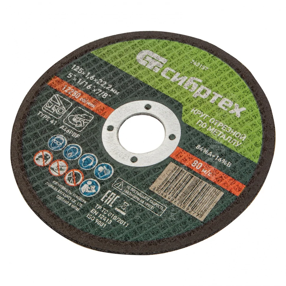 Отрезной круг по металлу Сибртех 743157, 125 х 1,6 х 22,2 мм, используется в качестве оснастки на УШМ для сухого реза изделий из углеродистых сталей: труб, арматуры, проволоки и т.д. Высокая производительность позволяет использовать круг как в быту, так и в частной мастерской или на небольших производствах.ПреимуществаАбразивные зерна из оксида алюминия имеют острые грани и легко справляются с резкой твердых материалов.Двухслойная усиленная стеклосетка придает кругу прочность на разрыв, что повышает безопасность работы.Бакелитовая связка с упрочняющими элементами обеспечивает максимальную износостойкость круга.Круг быстро режет материалы, позволяя получить аккуратный срез.Круг отличается превосходным качеством, т.к. изготовлен на высокотехнологичном оборудовании квалифицированным персоналом.
