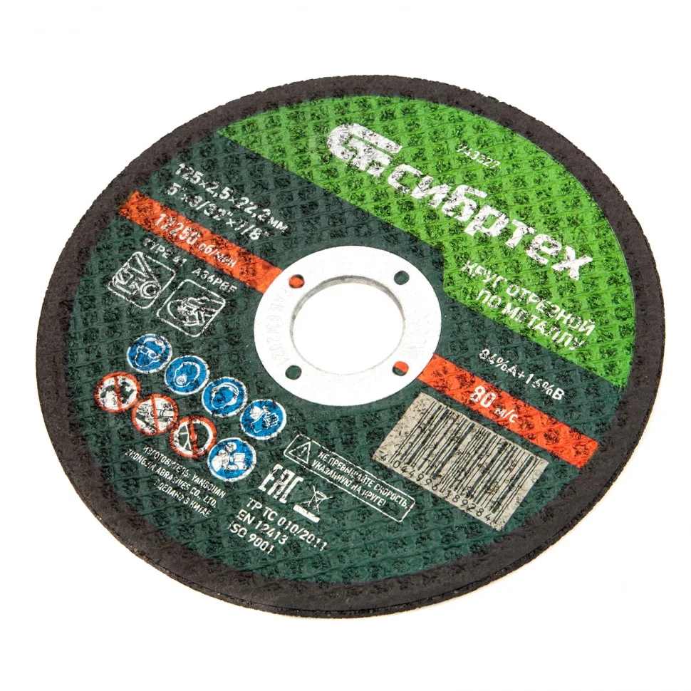 Отрезной круг по металлу Сибртех 743327, 125 х 2,5 х 22,2 мм, используется в качестве оснастки на УШМ для сухого реза изделий из углеродистых сталей: труб, арматуры, проволоки и т.д. Высокая производительность позволяет использовать круг как в быту, так и в частной мастерской или на небольших производствах.ПреимуществаАбразивные зерна из оксида алюминия имеют острые грани и легко справляются с резкой твердых материалов.Двухслойная усиленная стеклосетка придает кругу прочность на разрыв, что повышает безопасность работы.Бакелитовая связка с упрочняющими элементами обеспечивает максимальную износостойкость круга.Круг быстро режет материалы, позволяя получить аккуратный срез.Круг отличается превосходным качеством, т.к. изготовлен на высокотехнологичном оборудовании квалифицированным персоналом.