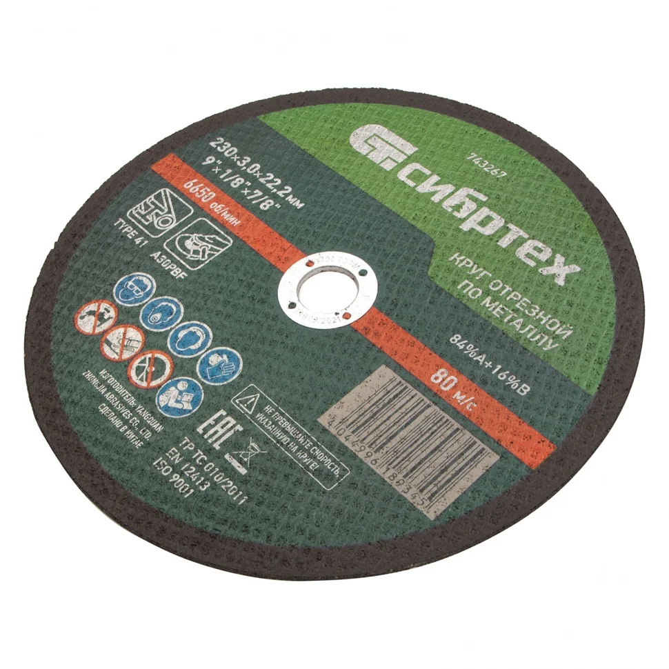 Отрезной круг по металлу Сибртех 743267, 230 х 3,0 х 22,2 мм, используется в качестве оснастки на УШМ для сухого реза изделий из углеродистых сталей: труб, арматуры, проволоки и т.д. Высокая производительность позволяет использовать круг как в быту, так и в частной мастерской или на небольших производствах.ПреимуществаАбразивные зерна из оксида алюминия имеют острые грани и легко справляются с резкой твердых материалов.Двухслойная усиленная стеклосетка придает кругу прочность на разрыв, что повышает безопасность работы.Бакелитовая связка с упрочняющими элементами обеспечивает максимальную износостойкость круга.Круг быстро режет материалы, позволяя получить аккуратный срез.Круг отличается превосходным качеством, т.к. изготовлен на высокотехнологичном оборудовании квалифицированным персоналом.