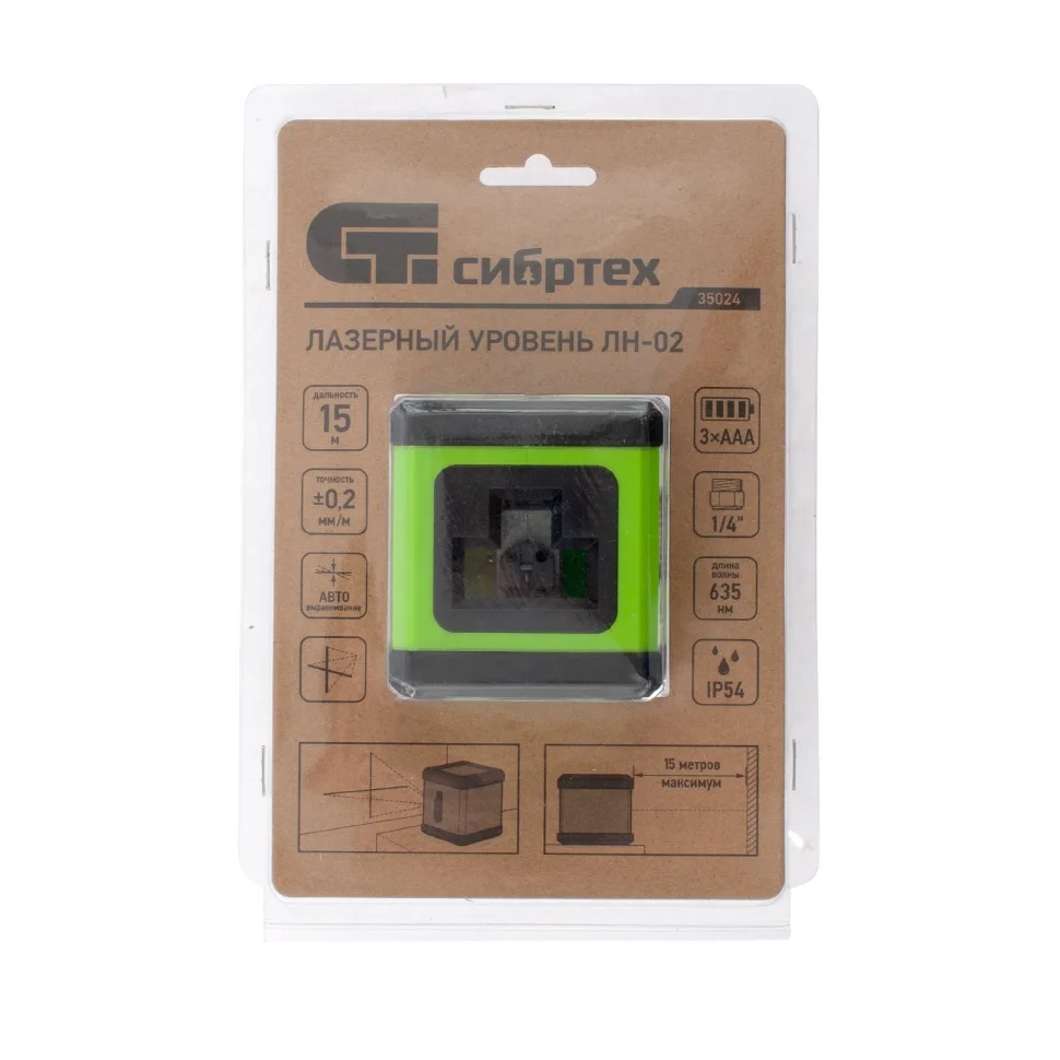 Лазерный уровень ЛН 02, 15 м, 635 нм, резьба 1/4" Сибртех 35024